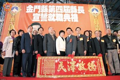 「工作就是最好的儀式」! 縣長李炷烽連任就職已滿一周年,昨日他特別感謝鄉親大眾對他的信賴與支持,他表示,五年來從未針對就職周年舉行過任何儀式,因為他認為,工作就是最好的儀式。 李炷烽指出,十二月二十日對他個人來說是一個重要的日子,他是以充滿感恩與自我期許的心情來面對這一天,李炷烽說,他受鄉親囑託與期許,擔任縣長這一角色,正好滿五周年,謝謝鄉親大眾對他的信賴與支持,五年來從未針對就職周年舉行過任何儀式,對這一日子,也沒刻意渲染或宣揚個別的政績,因為他認為,工作就是最好的儀式。 李炷烽表示,五年來,有不少不足的地方,也有不少的成就,特別是有很多重大的突破,這一切都是靠大家同心協力、共同打拚的結果,因此,對於大家的支持、協助、配合,他表達由衷的感謝。 李炷烽強調,縣政府就是一個大家庭,所有鄉親對這一大家庭有很大的期待,他也感受到同仁幹部們工作的壓力很重,他有很多的要求,大家對自己本身也有很多抱負,面對府會關係,五年來,一直尋求不出更好的辦法,特別是今年,預算遭到有史以來重大的挫折,雖然這幾天縣議會表達很大的善意,表示留給縣府很大的空間,但新年度就要來臨,縣議會定期會的決議、結論很快就會送到縣府,一旦送來,有二件重大事情必須即時來加以處理。一是確認該決議所定義的範圍,該如何解釋?除了要尊重議會主張,也要瞭解會計審計方面未來在核銷問題上的作法;二是因為預算刪減幅度很大,可能會影響到未來正常的業務推動,因此,這幾天應尋求更積極對策,想辦法先進一步跟議會做更積極的溝通,取得共識,再尋求復議的可行性,當然也期待各方能開誠佈公,理性對待預算的執行,李炷烽說,這不是議會與縣府的較勁,而是對全民的負責,縣府應保持這樣的態度,他也相信議會應該也有這樣的體認,不只是為自己負責,也要對鄉親負責、對縣政未來負責,甚至是對金門歷史的發展負責。 李炷烽認為,走過的痕跡都會留下深刻的紀錄,因此,期許同仁們秉持真誠務實、積極進取的精神,進一步與議會做實質溝通。他也肯定在與議會協調過程中,縣府各單位對新年度的預算,都能負責審慎處理,一方面檢視過去執行的成效,二方面也對未來可能的發展,做了完備的考量,當然議會期待縣府有更好的突破,但是以中央整體政策走向,目前難以有效達成期望。李炷烽表示,今天地區財政還有所餘裕,但有些重大的措施,在大環境還沒有解除限制前,勉強或彈性、權宜的作法,對相關的投資都會產生很大的影響,這一切有待大家共同努力。 李炷烽指出,未來任期還有三年,希望大家秉持初衷,堅守原來自己的承諾與主張,也期待大家給他更多的支持與協助,讓縣政工作在屆滿八年後,對自己無愧,對縣民有所交代,對金門歷史發展能奠下更好的基礎。 縣長李炷烽係於去年競選連任成功,並於去年十二月二十日宣誓就職。在就職典禮中,李炷烽以「打造金門品牌、共創發展生機」為題發表就職演說,提出未來施政十大目標,強調將以要求「把金門的明天還給金門人自己」為使命,落實「打造金門的品牌:讓金門成為兩岸的資產;開拓金門的生機:使金門成為兩岸中轉的明珠」兩大願景,並重申「此生不再參與公職的競選」,將全心為金門奉獻。 在該演說中,李炷烽提及未來的縣政工作重點,包括: 第一、要求「把金門的明天還給金門人自己」為使命,落實「打造金門的品牌:讓金門成為兩岸的資產;開拓金門的生機:使金門成為兩岸中轉的明珠」兩大願景。 第二、扮演兩岸橋樑,落實和平特區:爭取中央委由地方立法,促使小三通人貨往來正常化,成為免稅特區與自由貿易港,達成非軍事化特區之目標,讓金門國際化、和平化。 第三、建構社安體系,營造祥和社會:賡續強化社福工作,增列育幼津貼,提高殘障給付、低收入戶補貼、單親家庭輔導,使縣民居有所安、病有所治、殘有所護、幼有所長、壯有所用、老有所養。 第四、擴大金酒產銷,建立全球品牌:以永續金酒為宗旨,擴大第三生產線,籌組行銷公司,自建金酒通路,以全球白酒第一品牌為目標,拓展兩岸及海外市場。 第五、提昇觀光產業,帶動旅遊升級:排除投資障礙,引進休閒、渡假遊憩產業及星級國際觀光飯店,促進產業升級,提高服務業品質。 第六、深化金門優勢,推動閩南原鄉:軍事資源活化,自然生態保育,閩南與僑鄉建築文化之保存,行銷地區獨特之文化觀光特色。 第七、轉型安全農業,推廣無毒產品:營造有機、無毒之農業環境,建立農業生產履歷制度,拓展無毒農特產品及酒糟有機畜產品之兩岸市場。 第八、加強衛生環保,型塑陽光城市:強化社區保健、衛生環保,提倡全民運動,推廣各項藝文活動;並提昇自來水水質,汰換管線,提高污水接管率,境外引進所需水源。 第九、優質教育環境,恢宏海濱鄒魯:持續改善教育環境各項軟硬體建設,建構完善就學體系與終生學習環境,推動技術學院升格為金門大學,爭取開放大陸學生就讀,使金門成為兩岸教育園區。 第十、矢志清廉執政,戮力為民服務:強化府會、鄉鎮間之協調,加強公務人員在職訓練,提高政府效能,全方位服務縣民。
