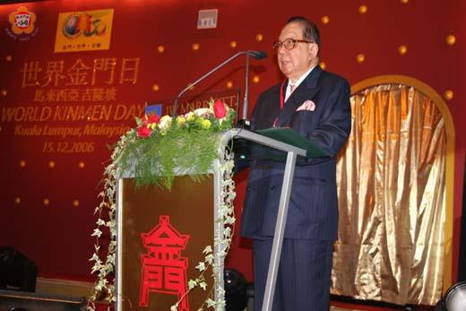 第二屆世界金門日昨日舉行媒體記者會,丹斯里拿督斯里楊忠禮在會中表示,金門是一個好地方,如果金門有合適的地方,他相當樂意返金投資。縣長李炷烽則表示,金門發展觀光有其特殊性,他深信金門未來將可取代港澳,成為新東方明珠。 第二屆世界金門日媒體記者會於昨日下午四時三十分假萬豪酒店舉行,出席人員包括有:丹斯里拿督斯里楊忠禮、巴生雪蘭莪金門會館主席王豪杰、福建省主席顏忠誠、縣長李炷烽、副縣長楊忠全、議員莊良時、金門技術學院校長李金振,與來自各地多家平面與電子媒體。 針對記者詢問的海外金門鄉親可為金門的經濟建設和兩岸永久和平做什麼?楊忠禮表示,過去半個世紀,金門在兩岸關係扮演重要角色,而海峽兩岸的和平與寧靜,也首先降臨金門,小三通的行之有年,就是明證,海外鄉親期待海峽兩岸永久和平,金門的建設發展可以蒸蒸日上。他也提及世界金門日在吉隆坡舉辦,是馬來西亞金門鄉親的榮耀。 楊忠禮也指出,金門是一個好地方,如果金門有合適的地方,他相當樂意返金投資。 李縣長則表示,希望各地金門鄉僑可以多聯繫感情,在金門走向世界之際,大家能多回金門投資,投資金門,就是投資兩岸與投資中華民國,意義重大,他先前所提的一國兩制芻議,就是希望金門可以更加速發展,他深信金門未來商機無限。 此外,李縣長在回應記者訪問時也表示,阿扁總統在二千年曾在金門提出「行政特區」的主張,只要他可以實現競選承諾,讓金門成為貿易與港區,將可取代現在的香港;他也提及,目前小三通一年約有六十萬人次,只要中央放寬限制身份等資格限定,金門的往來人數將可大幅成長。 李炷烽也鼓勵僑親可以多回家鄉走走,他說,金門發展觀光有其特殊性,他深信金門未來將可取代港澳,成為新東方明珠。 莊良時表示,只要對金門發展有益的,金門縣議會站在民意立場,都會給予高度支持,他說,希望世界走向金門,旅外華僑都能回金門投資,而旅居海外的僑親都可以當金門的行銷推手,逐步從點至線面推廣,讓金門發光發熱;而在兩岸區域整合上,金門有其一定的空間,他認為,金酒可以整合金門所有產業,與外資市場相互合作與競爭,大家能共同為金門的明日來努力,讓金門的明日會更好。 顏忠誠也提到,實驗小三通已施行快六年,省政府近來將提案,將實驗字樣拿掉,改為擴大小三通,屆時看中央能否採納提議,他也提到,金門只要能夠成為人貨中轉,中央政策鬆綁,金門是大有商機,明日一定會更好。 李金振表示,目前金門技術學院已經有一位馬來西亞僑生在就讀,未來針對吸引僑生部分,縣府將與學校合作,提供僑生一人十萬元的獎學金,鼓勵他們返鄉就讀,也為海外僑生提供另一求學管道。