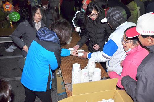 圖文/陳冠霖 金湖鎮昨(10日)晚慶元宵,正逢寒流來襲,鎮公所準備熱呼呼紅豆湯圓供民眾領取,天氣冷,人手端著一碗熱湯圓,喝上一口,暖暖身子;深怕紅豆湯圓供應不及民眾領取,鎮公所煮了一桶又一桶,來回接力,讓每個鄉親都能吃到元宵節應景湯圓。