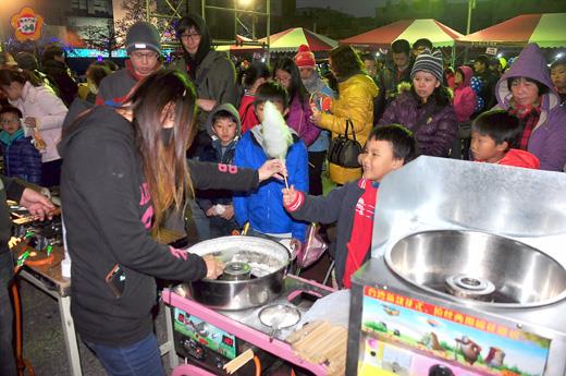 圖文/陳冠霖 金湖鎮昨(10日)晚慶元宵,鎮公所「無限量」供應棉花糖和爆米花,吸引大量小朋友排隊領取,吃了又拿、拿了又吃,棉花糖和爆米花「吃到飽」,現場宛如是小朋友的樂園,鎮長蔡西湖說,元宵節,小朋友開心就好。