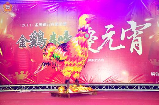 圖文/陳冠霖 金雞春啼慶元宵,金湖鎮公所今年也自製大型花燈,名為「金雞報喜」,一隻雄赳赳的雞,身上羽毛五彩繽紛、隨風飄揚,點亮燈後,十分氣派!昨晚也放在金湖慶元宵活動現場舞台上供民眾觀賞。