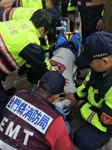 船員落海被救起!1名貨船船員9日晚間在料羅港固定貨船纜繩時,一不小心摔落海裡,旁人見狀趕緊報案,金門岸巡總隊派遣料羅安檢所機動人員3名,以及通報金湖消防分隊協助派遣救護車,順利將該船員救起,所幸僅頭部有1公分撕裂傷,送醫治療。 海巡署中部地區巡防局第九海岸巡防總隊於9日晚間,接獲民眾報案指稱,料羅商港1名船員不慎落海。第九海岸巡防總隊獲報後,即刻派遣料羅安檢所機動人員攜行救援裝備前往現場救援,於第一時間將落海船員救起,並由救護車送往衛福部金門醫院就醫。 第九海岸巡防總隊表示,9日晚間20:45,接獲民眾報案,料羅商港1名船員不慎落海請求救援,第九海岸巡防總隊並即派遣料羅安檢所機動人員3名,前往現場實施救援行動,同時通報金湖消防分隊協助派遣救護車,約於20:47時順利將落海船員救援上岸,該船員意識清醒,無失溫情形,惟頭部有約1公分撕裂傷,後由其船主陪同下送往衛福部金門醫院就醫。 金門岸巡隊指出,經查該落海船員是因潮汐變化,調整固定貨船之纜繩,一時不慎導致落海情事,同時呼籲民眾於港區進出時,務必注意自身安全,尤以夜間時段因視線較差,易致生危安事故發生,民眾務必提高警覺,以防憾事發生。 第九海岸巡防總隊總隊長詹嘉德表示,救難工作分秒必爭,海巡署本著「人溺己溺」與「救人為先」之理念,在第一時間進行援救,以發揮本署積極為民服務之精神。在此呼籲民眾,如於港區、岸際或海域發生危急狀況時,可立即撥打118免付費服務專線,本署將於第一時間趕赴現場實施救援,以維護人民生命財產安全。