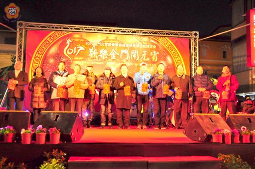 「愛您一起‧點亮金門」2017金門元宵燈會暨首屆兩岸古風燈謎會活動昨日晚間熱鬧登場,由縣長陳福海主持開幕,並與縣府局處首長和貴賓共同啟動元宵主題點燈儀式,燦爛煙火四射,現場鄉親一陣歡呼,浸進在元宵歡樂氣氛裡。隨即,在陳縣長帶領中正國小提燈踩街隊伍及民眾遊街遶行後浦城區,沿途發送花燈和到寺廟參拜祈福;陳縣長許下與所有鄉親「愛在一起」,共同點亮金門和兩岸,讓金門成為幸福島嶼,並祝福全體鄉親身體健康、幸福美滿! 金雞報喜·點亮金門!陳縣長在縣長辦公室主任陳永明、文化局長呂坤和及副局長黃雅芬等人陪同,在昨天下午五時三十分,就來到總兵署廣場前的金門元宵燈會主會場,並發送金雞年DIY手提花燈,給在場大排長龍領取的大小朋友和民眾,有民眾開心的拿著花燈與陳縣長合影外,也有民眾一起拍照留念,更有的迫不及待的在現場動手摺起來了,洋溢著歡欣的氣氛。 2017金門元宵燈會開幕點燈儀式於昨晚六時三十分舉行,現場擠滿了遊賞花燈的鄉親和遊客;點燈儀式開始,陳縣長與文化局長呂坤和、觀光處長陳美齡、建設處長李斌、縣長辦公室主任陳永明、金防部政戰主任武立文及金城鎮長石兆瑉、金湖鎮長蔡西湖、金寧鄉長陳成勇等人,並在鄉親一起倒數下,共同啟動「愛您一起·點亮金門」金門元宵燈會主題燈,現場煙火四射,十分的燦爛,也照亮了城區小年夜的夜空,洋溢著美麗歡慶喜氣! 在元宵燈會致詞時,陳縣長表示今年的元宵燈會很不一樣,燈會主題是「愛您一起·點亮金門」,充滿著溫馨和希望,也擴大舉辦,除了主會場,也有分會場與入境迎賓燈區,點亮金門和兩岸,十分的有意義!同時,他在丁酉雞年期許大家團結一起,並透過兩岸合作和一家親的情感,共創金廈兩岸美好發展願景! 歡慶農曆丁酉雞年新春到來,陳縣長說自大年初一起至大年初三,無論農林漁牧各所推出的新春活動,或是縣府各單位都卯起來,一起和全體鄉親迎接春節和新的一年到來,並過一個好年!他也表示,春節期間天氣特別好,更與立委楊鎮浯通力合作,讓整個春運疏運工作十分順利和圓滿,所有鄉親都能歡欣的返家過年及回到工作崗位,也要感謝老天幫忙。 陳縣長指出,金門除了交通改善問題之外,還有攸關鄉親就醫及健康的醫療問題,都在逐步改善和進展,縣府團隊亦會十分的用心推動施政建設工作,最重要的是更要有鄉親的支持,以及縣議會議長洪麗萍、副議長謝東龍與全體議員對於縣府施政的支持,並代表鄉親感謝議會和鄉鎮的支持,使得縣政建設更為進步。 去年中秋節,地區遭遇到罕有的莫蘭蒂颱風風災,重創金門島,陳縣長強調表示「危機就是轉機」,經過風災破壞後,但也是「建設的開始」;而且,去年秋節的颱風風災,也讓人們知道大自然的破壞力量是很可怕的,但只要縣府團隊和各鄉鎮一起努力,一定都可渡過難關,破壞之後可以更成功。 陳縣長再次感謝鄉親的支持,讓金門縣在「快樂指數」與「城市光榮感」,都榮獲全國第一名,金門人是全國最快樂、最幸福的人民,並說身為金門人,以金門人為傲和光榮! 最後,陳縣長指出縣政工作千頭萬緒,還有許多沒有做的、需要檢討的,都會虛心來檢討及努力;而且「好還要更好」,並許下與所有鄉親「愛在一起」,共同來點亮金門,讓金門成為幸福島嶼,更祝福全體鄉親身體健康和家庭幸福美滿! 今年的金門元宵燈會花燈展期自昨日起到二月廿五日止,長達十五天,金門縣文化局表示,今年元宵節主燈設計超過六公尺,以金門吉祥物「三寶」,即「風獅爺」、「水獺」、「戴勝」為核心意象,加上、「花蛤」、「風雞」兩個金門元素,組成「五福臨門」的幸福象徵,呼應金門為全國幸福城市,並傳達陳縣長感謝全體縣民的共同努力付出,期在2017「愛您一起」,共同推動「兩岸的金門」、「幸福金門」、「美好金門」、「點亮金門」的希望願景! 此外,金門元宵燈會系列活動昨晚有民俗藝陣和歌唱表演,以及抽獎活動;至於首屆金門兩岸燈謎會活動將於今、明兩天下午六時三十分至八時三十分,在總兵署前廣場舉辦;花燈比賽頒獎典禮將於十三日下午七時,在總兵署前廣場舉行;燈會展覽自十一日至廿五日(上午九時至下午九時),地點在總兵署、浯江書院、邱良功古厝前廣場、城隍廟前廣場、東門代天府前廣場、西門外武廟前廣場、南門天后宮前廣場、北門北鎮廟前廣場、水頭碼頭入境大廳、金門航空站入境大廳),歡迎大家共同參與,一起分享歡慶新春!