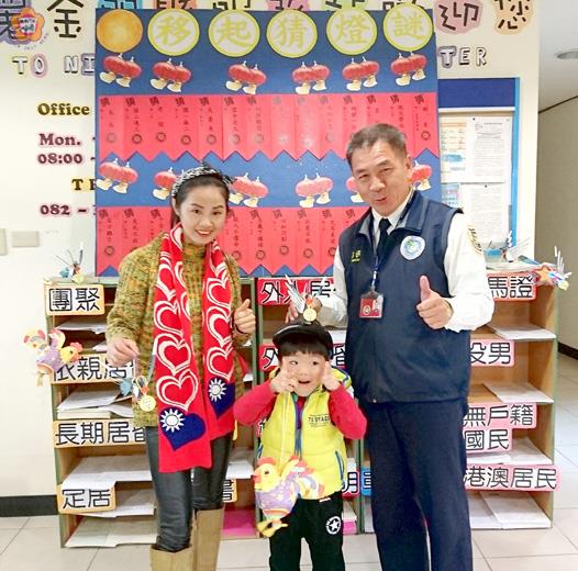一年一度元宵節,移民署為了讓新住民朋友體驗一下傳統的元宵節慶典習俗,移民署特別選在正月十五元宵節前夕,於周五(二月十日)舉辦「金雞報喜│二○一七《移》起猜燈謎」活動,吸引新住民以及洽公民眾的熱情參與。 為讓新住民體驗傳統元宵節慶習俗,適逢正月十五元宵節即將來臨,移民署南區事務大隊金門縣服務站特別結合交通部觀光局及金門縣政府文化局提供的提手花燈,於前(十)天選在服務櫃檯前舉辦「金雞報喜│二○一七《移》起猜燈謎」贈禮品活動,吸引新住民朋友及洽公民眾爭相參與,而公務機關融入民俗節慶來舉辦活動的創新作法,也能夠讓新住民朋友藉著活動的參加,更為深入了解元宵的傳統習俗。 金門縣服務站表示,該站在不影響公務運作之下,透過配合民俗節慶為主軸,運用一些巧思來與民同歡,由金門服務站佈置燈謎活動刊版,舉辦「金雞報喜│二○一七《移》起猜燈謎」活動,目的也是希望在多元文化激盪交流下,藉由「元宵節」的精神、內涵與相關活動的設計,讓洽公民眾及新住民朋友,都能感受到公部門的活潑、友善與親切。