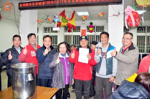 圖文/陳冠霖 昨(11)日是元宵節,金門各社區均舉辦元宵慶祝活動,金湖鎮正義社區舉辦花燈踩街遊行,讓小朋友拿著社區自創的雞年小提燈,到社區內踩街遊行鬧元宵;社區今年也舉辦花燈製作比賽,昨晚也一併頒獎。社區也準備潤餅、湯圓、魚丸湯等美食讓鄉親享用。包括縣府秘書陳金增、黃秀珍、縣議員李應文、金湖鎮長蔡西湖、金湖鎮代表陳向鑫等人,也到場同樂,縣議員李應文更帶來大禮,正義社區今年將興建社區活動中心,李應文帶來配合款100萬元的支票讓社區收下,社區居民感激不已。