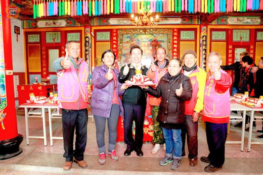 金沙山西社區今(106)年與北嶽廟管理委員會合作,力邀社區民眾製作米龜,從9日至11日延續傳統,於北嶽廟舉行乞龜保平安、發大財活動,縣長陳福海昨(11)日下午也親赴北嶽廟致意、上香參拜。 昨日是元宵節,陳縣長於下午抵達北嶽廟,拿著縣府發行的元宵節小提燈發送給現場鄉親和小朋友,並親切與鄉親握手寒暄,之後入廟內參拜,祈求金門百姓均安。陳縣長表示,乞龜活動是特別的文化,具有廟方在地特色,值得推廣;其中一位小男孩,截至昨日下午陳縣長蒞臨時,連續擲出10個聖筊,是目前為止最高紀錄,陳縣長也特別與他合照。 山西社區發展協會主委李仁源表示,每年農曆正月13日至15日是山西北嶽廟「乞龜求福」活動的日子,北嶽廟管理委員往年都是向台灣訂購,並由廠商直接海運到金門。由於製作米龜的過程費工費時,因此,合作廠商表示從今年起,不再做米龜,僅提供金錢龜及金雞母,聯絡其他家廠商亦獲得相同答案。為使這項傳統習俗能夠延續下去,因此,社區居民號召自製米龜,讓居民們自己動手製作精美的米龜作為元宵節慶用品。 在製作過程中,居民們一起動手,但看似簡單的米龜,做起來卻不容易,經過多次拆卸組裝與討論後,終於抓到訣竅,完成這次活動所需的米龜。山西北嶽廟管理委員會指出,此次的活動凡連續擲得3聖筊者,即可得到米龜1隻,參與的民眾可按添緣金100元,獲得5台斤米龜;200元獲得10台斤米龜;300元獲得20台斤米龜;500元可獲得30台斤米龜。 廟方在今年特別加碼,每日最高筊者還可得金錢龜(金雞母)一隻。另每日限額5隻金錢龜,添緣200元並擲出5聖筊者即可獲得,5隻金錢龜並不列入每日最高筊人選。