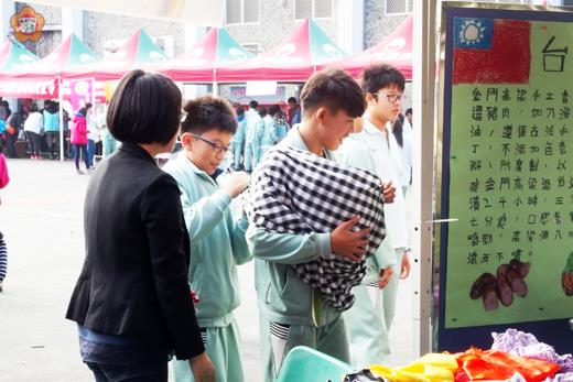 金寧中小學校長陳雅蘭推動多元文化教育,透過多元文化親子園遊會,由許多新移民家庭提供異國美食以及遊樂體驗區,展現新住民朋友的文化特色。其中,也以金門「花帔」為主軸呈現於生命禮俗體驗活動中,展現閩南特色文化。 陳雅蘭校長指出,學校推動「新住民語文樂學」活動,安排各項新住民母語課程及文化體驗活動,學生們除學習印尼語、越南語及美食製作,校方更期盼藉由外語課程,搭配多元文化體驗活動,以促進新住民親子關係,進而增進新住民子女對於異國母語聽說能力及文化體驗學習。 陳雅蘭表示,搭配輔導室多元文化課程期末成果發表,特以「生命禮俗的文化展演」為主,全校師生及家長共同設計多元文化園遊會攤位,展現新世代寧中多元組成與學習成果,並讓在校學生與校友共同體驗不同文化的生命禮俗。 陳雅蘭說,各種文化內涵中的生命禮俗特色展演,包括以服裝、器物、食物等或歌謠、戲劇、故事展現。其中共規劃包括金門(閩南)、台灣(客家、原住民)、大陸(各省分均可)印尼、越南、新加坡或馬來西亞、日本、韓國、美國、英國及其他歐洲、非洲、大洋洲或中南美洲。而學校幼兒園特將小水獺班課程主題--「服裝店」「花帔」設攤,展現幼兒平時手做「花帔包」,以及利用剩餘碎布製作杯墊與小包包。現場展示娃娃與花帔布,讓參與人員可體驗如何運用「花帔」帶幼兒出門。展示板中,也透過文字告訴與會人員「花帔」、「卍字」與「度晬」的意涵。 陳雅蘭指出,「花帔」是金門特有文化,因為「花帔」有保護幼兒的意涵也與生命教育內容相呼應,故特以「花帔」為主軸呈現於生命禮俗體驗活動中。陳雅蘭說,「花帔」是承襲超過800年的金門閩南獨特育嬰用品,也是每個生於斯,長於斯的金門人共同的記憶,這個黑白方格相間的花帔,專攻剛出生不久的嬰兒外出帔戴之用,據說可以「驅魔避邪」,保護嬰兒不受外物驚擾,可穩定嬰兒的情緒。 陳雅蘭說,學校就像一個大家庭,融合各國的文化,讓孩子看見世界,更使世界加入寧中小。她更期許透過不同的互動性單元或DIY,讓小朋友有更多元的學習,讓心胸更寬廣。