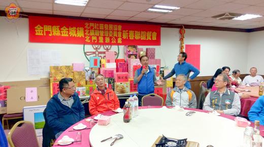 元宵前夕,各地依舊充滿年節喜氣,金城鎮北門里辦公處、北門社區發展協會、北鎮廟管理委員會於昨(四)日舉行聯合新春聯誼餐會,邀請社區居民一起同樂,百餘項摸彩品,也讓現場的餐會氣氛熱鬧歡愉,嬉鬧與歡呼聲此起彼落。 「金城鎮北門里辦公處、北門社區發展協會、北鎮廟管理委員會」新春聯誼會,於昨日晚間六時三十分起,假國慶餐廳,席開十餘桌,邀請社區民眾以及西門外武廟同樂,而縣府參議許寬、縣府秘書許金象、立法委員楊鎮浯、縣議員洪允典、李誠智、金城鎮長石兆瑉、金城鎮民代表會主席陳天成、副主席郭永隆、代表蘇碧浯、林金英、李錫瑜、許惠玲等人,也到場共襄盛舉。 北門社區居民出席踴躍,也展現出北門居民的好感情,以及社區親友們彼此之間的向心力。北門里長許績才表示,今年是北門三個重要單位,首次聯袂舉行聯誼餐會,此舉也表示居民之間是相當團結,因此意義重大,而接下來的各項活動,也有賴社區民眾們的共襄盛舉,一起協助。許績才也預告,元宵節即將來臨,屆時將會與家扶中心,在北鎮廟戲台前廣場,舉辦熱鬧的猜燈謎活動,歡迎大家前往參加。 昨日的餐會氣氛歡樂,許寬、許金象、楊鎮浯等多位與會貴賓也逐一向現場社區民眾們敬酒賀佳節,除了有美食之外,北門社區準備百餘項摸彩品提供給與會者試手氣,獲獎者各個笑得合不攏嘴。