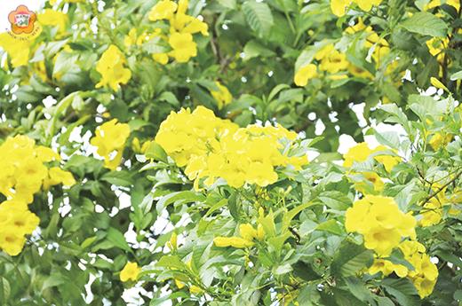 屬於熱帶花卉的黃鐘花又開花了,讓天涼的冬季枝頭帶來花美的詩意,真是美呆了! 原產於南美洲的黃鐘花,地區也有人種植。每到開花期,滿樹黃色花朵,近看、遠看,都美不勝收。 黃鐘花(學名Tecoma stans)是屬於熱帶花卉,但卻能忍受零下十二度的低溫,可見其韌性。 黃鐘花是大型灌木,可以長至一到三公尺高,頂生,圓錐花序,能以種子繁殖,但目前大多以扦插繁殖,很容易成功。國內有人在花謝後即刻修剪枝幹,再施加追肥,沒多久就又能開花,所以能持續整年開花。 黃鐘花開花時呈黃色的鐘形花,所以被命名為「黃鐘花」,其種子以長豆莢的果莢存在。黃鐘花屬紫葳科,為常綠灌木,葉對生,奇數羽狀複葉,三至十一小葉;或有單葉。花為黃色,頂生喇叭狀,花冠漏斗狀鐘形,花萼為茼狀鐘形五淺裂。蒴果線狀。種子狹橢圓形,具有薄大的二翼,像二大翅膀。 黃鐘花適宜庭園樹或盆栽,可供觀賞。開花期以夏季及秋季為主。冬季開花實屬較少見。