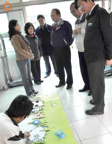 晨光教養家園全體園生將於十一月二十九日參加國際身障者日活動;即使步履維艱,屈伸困難,二十四位園生都會登台演出,一個都不能少! 金門縣長李炷烽、民政局長洪國正、社會局長許乃權等,昨天造訪財團法人晨光社會福利基金會附設金門縣私立晨光教養家園,致贈兩岸和平消災祈福超薦水陸大法會普供的平安米。 李炷烽等人到達晨光教養家園時,晨光的師生正在為國際身障者日做準備;他們正在製作道具及佈景。 據晨光創辦人施美珠表示,十一月二十九日在金門縣社會福利館將會有國際身障者日活動,晨光的園生將上台演出。她說,雖然園生中,只有一個園生能夠生龍活虎地做出各種動作,但是他們還是要做到機會均等,讓每一個園生能登台亮相,發揮潛能,擺動一下,歡樂一下。 晨光園生登台表演的主題是「青春不要留白」;他們製作的道具、佈景,都是就地取材。據施美珠表示,牧草地是用裝尿布的紙箱做的;幾個等身高或半身高的人型道具是用「治療球」搭配垃圾桶或毛線……等等,組裝而成的。 牧草地佈景上,有憨態可掬、黑白花色的荷蘭乳牛,有怡然自得、兩角彎彎的捲毛綿羊;有蝴蝶、瓢蟲、甲蟲;有紅的花、藍的花、黑的花……。人型道具不管是長臉的、圓臉的,都有生動的表情。這些東西都不花錢又很環保的,卻更加讓人讚賞。國際身障者日活動是由社會局舉辦,社會局長許乃權歡迎各界屆時前往觀賞。 洪國正表示,縣長等人此行是為了致贈經過佛祖加持過的白米(平安米)給園方;除了晨光之外,福田家園、大同之家以及全縣兩百五十四個低收入戶都是受贈對象。 除了法會贈平安米之外,本月(十一月)間,晨光收到捐物包括金門家扶中心麵包四十個、白米五包;收到的捐款包括:邱菊妹五百元、陳鎮明六千元、李振明六千元、洪軒億五百元、楊翠羨二千元、張琦珍三千二百元。 晨光家園收的對象是凡年滿六歲的中度、重度、極重度智障者或以智障為主的多重障礙者;他們相信:我們不能選擇生命的來處和先天條件,但「有愛無礙」,「有教無類」,身心障礙者的生命仍具有獨特性和可開發性。 他們對園生的服務包括:生活照顧、休閒娛樂、衛生保健、復健療育、職業陶冶、輔導就業;並以「障礙者皆有所養」做為家園願景。