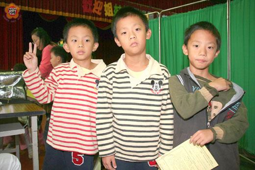 國小學童自昨日起於學校集中接種H1N1新型流感疫苗,李胤慶、李胤鋒、李胤賢三胞胎同時完成接種。三兄弟說,一點都不會痛、也不會怕! 李姓三胞胎目前就讀金湖國小二年級,同班同學形容老二李胤鋒人氣最旺;導師黃芸芸表示,他們各有所長、三人的個性不同,拿手的項目也不同,大哥喜歡數學、老二喜歡體育、老三喜歡國語。 團結力量大,至於三兄弟會不會吵架或欺負同學,老師和一旁的女同學一致表示,不會,而且他們在班上很受歡迎。