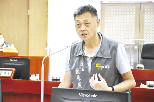 金門縣議員董森堡昨天在議會縣政總質詢議程,他關注海洋污染、工程落後、軍事營區撥用活化、水源污染、成立水獺保育中心等多項縣政議題提出質詢及建議。同時,董森堡也請各單位依資訊透明原則,將縣府業務報告及簡報上傳到網站公開閱覽,一起推動縣政業務工作的進步。 議員董森堡質詢有關淺海養殖班範圍、污染物管理計畫及訂定替代性浮具獎助辦法的相關問題?他也表示,解決海洋污染,是府會共同的目標;去年,議長洪允典拜會陸委會建請政府重視海漂垃圾造成金門海域嚴重污染問題,希望縣府更努力及重視解決海域污染問題,讓金門成為美麗整潔生態島! 縣長楊鎮浯答詢表示,今年發放的十張淺海養殖班牌照,是在上任前就已核准,拖至今年才發放,主要訂定調整替代性浮具相關規定,以免造成海洋污染;至於既有淺海養殖班,將於換約時做相關要求,並訂定替代性浮具獎助辦法。 另,針對石蚵及吊蚵獎勵不均的情形,董森堡建議縣府納管養殖戶,並落實補助公平原則,真正照顧到該照顧的蚵民生計。 董森堡也質詢縣府所轄單位工策會承標縣府標案問題?縣長楊鎮浯表示,公職人員利益衝突回避法有很清楚規定,並都要求按規定辦理。同時,縣長楊鎮浯指出議員所指出的「合法不合理」情事會去徹查,不會只以法律為依據,更在乎的是底線要更嚴謹及觀感,並相信團隊很自律! 董森堡也表示,縣府政風處承命成立廉政委員會,他認為廉委會成立與否,並不重要,重要的是政風處有無落實查核的功能,減少「合法不合理」標案, 才是政風處最大的功能。 針對社團的補助相差問題,董森堡表示地區社團寫計畫爭取補助,一年最高補助二萬元;工策會是社團法人團體,一年拿到一千三百萬元,居全縣所有社團之冠,其他社團如何看?他建議,未來縣府產業發展處成立之後,縣府能重新檢討工策會、三創平台功能性;如果縣府堅持工策會成立及編預算,請縣府納管及並由縣府相關人事擔任工策會總幹事;如需要招商,可成立臨時招商作業小組辦公室。 縣長楊鎮浯表示,經濟部、中小企業處都有法定職掌,他們還是輔導成立工策會;未來將對工策會功能及角色做更明確區分,並訂定相關納管辦法。而且,去年對於工策會有很多要求,工策會並做很多成績。 董森堡指出,去年曾反映地區工程落後的問題,並要求縣府要有不良廠商淘汰機制,縣府並應該加強稽核,而不是放寬標準。因此,他建議工務處要有不良廠商預警制,把抽驗改成定期查驗,讓工進如期執行,公帑也才發的值得。另,董森堡也表示未來縣府辦理工程發包作業,各單位應該有通報聯繫系統,並對接案廠商做能力評鑑,期如期如質做好工程。 董森堡表示,銘傳大學函請教育處協助撥用陸軍三獅山二營區營地,以作為戶外活動之場域;在會勘之後,由縣府繕造撥用計劃書辦理。他也強調說,縣府可以直接回絕銘傳的需求,也不反對營區活化,銘傳可申請柳營營區作為戶外活動場域,更可提高柳營活動力及增加收入,達到教育需求。請縣府嚴格審視銘傳撥用營區案。縣長楊鎮浯也表示會檢視此案具體內容和配置合不合理?以及其空間使用的合理?但最終決定要不要准予撥用的問題,應是國產署的權責。 董森堡也質詢縣府租用私有地與出租公有地租金價差的問題?他建議縣府修正縣有非公用不動產租金計收標準,以及租用私有地應有一套嚴謹規則。縣長楊鎮浯表示,縣府跟民間租地,是按照市場行情,沒有圖利或損害情事;但依縣府非公用不動產租金計收標準,公有地放租租金是太便宜! 董森堡也針對山外溪污染源提出質詢,如果不處理十幾年的山外溪違法養牛場案,他將向環保署檢舉水污染、向國有財產局檢舉侵佔國有地、以跟監察院檢舉行政怠隋。對此,縣長楊鎮浯表示,縣府有開過罰單,輔導轉移他處;至於污染水源部份,將請環保、工務單位馬上去看如何處理? 另外,縣府建設處今年將成立「水獺保育中心」,董森堡建議能夠資源整合,提高「水獺保育中心」成為「野生動物保育中心」,將後續軟硬體、專職人員養成與培訓系統同步規劃,保育中心應有正式編制,並落實生態廊道於所有道路工程,保障棲地的完整性,達到保育的目標。