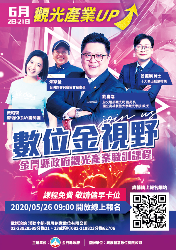 縣府針對在地觀光從業人員辦理「觀光產業人員職訓課程」,並展開報名,同時將已領中央機關一次性補助者納入職訓補貼對象,報名方式及課程詳情可至活動報名系統暸解https://www.kingspread.com.tw/kinmenplan)或電洽活動小組,電話:02-23928599分機21、23。針對課程如有相關疑問,亦可電洽082-318823分機62706諮詢。 新冠肺炎疫情漸趨緩,但仍衝擊全球觀光產業,為配合交通部三階段觀光及運輸業鬆綁規劃,縣府特舉辦「因應新冠肺炎影響協助地區觀光產業人員職訓計畫」,針對在地觀光從業人員,包括:旅宿業(旅館業、民宿業)、旅行業、交通業(遊覽車業、計程車業、小客車租賃業)、導遊領隊及解說員、觀光特產業等,規劃一系列課程,期盼提升各觀光產業接待能量,以迎接安心旅遊時代的來臨。 縣府為鼓勵各產業踴躍參與職訓,並考量職訓津貼與中央一次性補助性質略有不同,故放寬已領取中央機關一次性補助(薪資補貼、營運負擔補貼、勞工紓困、安心就業計畫、育嬰津貼等)者之限制,將已領中央機關一次性補助者納入職訓補貼對象。 縣府觀光處表示,本次課程已開始報名,這次課程主題為《數位金視野》,特別邀請前觀光局副局長劉喜臨、KKDAY行銷團隊、呂儼展總經理、好客民宿協會朱家瑩秘書長等大咖級講師,內容十分精采而且是免費參加,預計可達千人報名參加,另為便民服務,職訓課程也額外提供現場報名參加,民眾可於報名期間直接至觀光處(金城車站5樓)辦理;完成本次職訓計畫的學員,如符合「金門縣政府補助地區縣民參加職業訓練生活津貼暨就業促進獎助金實施要點」規定,可協助向社會處申請每日800元的職訓津貼。