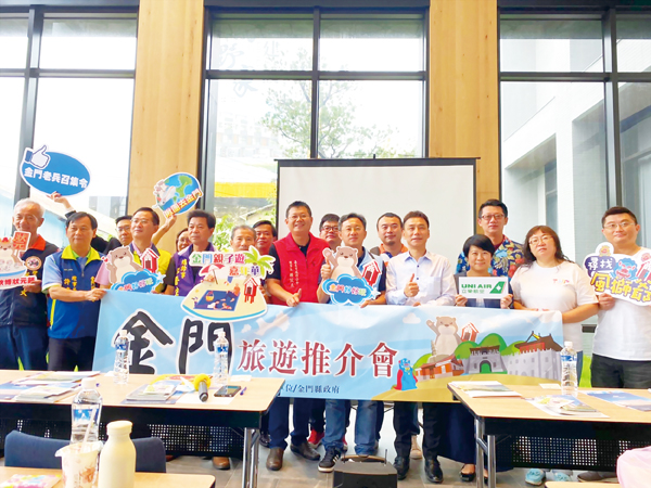 新冠疫情緩解,為爭取台灣旅行業者將金門做為推動國旅之重點遊程,金門縣政府觀光處掌握先機,昨(26)日由許績鑫副處長率隊赴台辦理四場旅行社推介會,在嘉義首場的推介會備受矚目,南區多位旅行商業同業公會理事長等人都親自出席,現場吸引逾100業者參加,與會台灣業者認為這次的推介會內容非常有吸引力。而金門數家旅行業者也親自到場推廣自家遊程及各種優惠方案,獲得極大好評。 金門縣政府觀光處由許績鑫副處長率隊赴台辦理四場旅行社推介會,依序為昨(26)日嘉義場、今(27)日台中場、28日新竹場、29日台北場。許績鑫在推介會中,針對親子樂遊、工商團體、獎勵旅遊等目標客群介紹觀光資源,也預告今年下半年觀光活動,期在疫情逐漸紓緩之際,讓業者能提早因應並納入遊程包裝。 在嘉義首場的推介會備受矚目,南區各旅行商業同業公會,包括嘉義市賴俊杰理事長、嘉義縣張景皓理事長、屏東楊聖民理事長、澎湖謝光富理事長等人都親自出席,吸引逾100業者參加,與會台灣業者表示這次的推介會內容非常有吸引力,可以針對目標客群去包裝產品,會非常有市場性。 觀光處表示,本次赴台推介會,金門業者包括華府旅行社、淘寶旅行社、金誠國際旅行社、金湖飯店、金環球旅行社、及育昇旅行社等共同出席,獲得業者高度支持與肯定外,未來也將持續加強推介,結合本縣業者赴台共同推廣金門觀光,向第一線的旅行業者直接宣傳行銷,拓展多元客源市場。也特別感謝嘉義、台南、高雄、屏東所有南部金門同鄉會等二十多人到場支持,讓本次金門觀光旅遊推介會更圓滿成功。