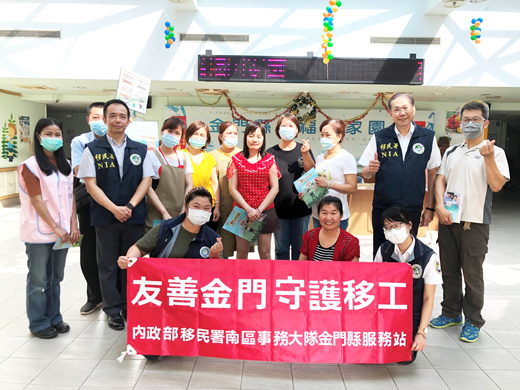 慶祝開齋節,移民署南區事務大隊金門縣服務站與專勤隊昨日前往福田家園與松柏園老人長期照顧中心,向現場來自印尼的移工朋友們道賀「Selamat Hari Raya Idul Fitri!開齋節快樂!」,讓移工們遠在他鄉也能感受節慶喜悅。 金門服務站在昨天的關懷活動中,邀請通譯向現場移工朋友們宣導防疫小撇步,以母語提醒移工朋友勤洗手並示範口罩的正確使用方式。 此外,為鼓勵逾期外來人口自行到案,移民署於4月1日至6月30日推動「擴大自行到案」專案,針對逾期居、停留之外籍人士採取「不收容、不管制、低罰鍰」的減免措施,也藉由這次活動,讓移工朋友利用網路社群及各種互動平台協助宣導,如周遭有逾期居、停留之外籍親友,均可撥打移民署「0800-024-881」或勞動部「1995」專線,鼓勵他們主動到案,安心返家。 主任廖蔚蘭表示,許多移工離鄉背井到臺灣工作,對於我國長照產業默默付出,藉由開齋節活動以實際行動關懷在金門工作的移工朋友們。