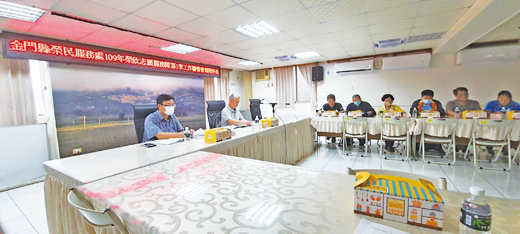 金門縣榮民服務處近日由處長呂媽定主持榮欣志工聯繫會報,所屬五鄉鎮志工隊長、社區服務組長及責任區輔導員均與會參加,呂媽定首先感謝志工夥伴不辭辛勞趕製口罩套給轄內較需照顧老榮民,也嘉許榮欣志工這2年來的改變及成長,從自發性參與公揹婆表演活動到各大節慶製作年糕、肉粽及蛋黃酥等應景食品,致贈地區較需照顧榮民,大家有目共睹且廣受好評,希望志工夥伴能在既有基礎上穩健發展。 本次會議討論端午佳節預計辦理的活動細節、志工新血招募及認養獨居榮民議題,參與夥伴皆能踴躍發言提出建議,會中也將上次「各隊志工認養獨居榮民議題」定案,期能藉由志工認養來消彌服務照顧死角,劉副處長也感謝服務志工長期支持,服務處不似一般醫院或事業體機構,有較優渥的資源給予志工,對志工也僅有微薄車馬費,但更有許多志工選擇不支領車馬費,鼎力襄助服務處相關工作推行,足見志工夥伴的服務熱忱,更希望能由現任志工引薦新血,加入志工隊一同共襄盛舉。 呂媽定亦提醒時值新冠肺炎期間,大部分志工活動雖停辦或緩辦,但從事訪視獨居及較需照顧榮民時,應遵守相關防疫規定,保持社交距離,自身若有身體不適情形,在家休息保護自己也保護服對象。