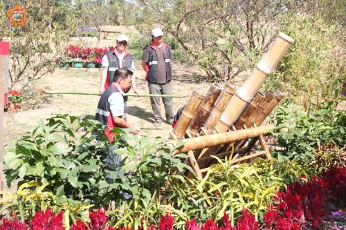 楊水詠/圖文 為了讓民眾了解竹子各種有趣的利用,林務所商請竹山青竹文化園區陳靖賦蒞金指導竹炮架設工作,經過竹藝師父的巧手,搭建有六門炮管的竹炮組,林務所介紹說,竹炮是利用長度約兩米,直徑約十公分的孟宗竹,在放入碳化鈣(也就是閩南語俗稱「電土」),加水產生乙炔的化學反應,在經點火產生的爆裂現象,不見威力的「空心砲」,昨天進入金門竹類標本園的遊客,也體驗了這項特殊的竹趣活動。