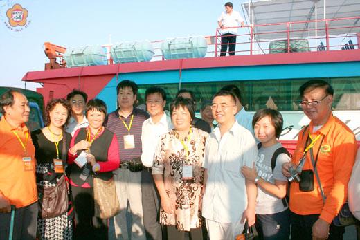 大陸浙江省金華市老年協會首發團六百二十二人昨日循小三通分梯搭船抵達金門,展開6天5夜台灣行。縣長李炷烽專程前往小三通碼頭歡迎,他表示,將可以一次遊程完整飽覽台灣本島與外島不同的風貌,體驗金門獨特的戰地和閩南風情。 浙江省金華市老年協會首發團六百多人分梯搭船前進金門,昨日下午二百多人在廈門東渡搭乘捷安輪客船抵金,縣長李炷烽由縣政府交通旅遊局課長許績鑫等人陪同,在水頭碼頭歡迎遠道而來的「客人」,現場還有祥獅獻瑞表演迎賓,十分熱鬧,讓旅遊團的團員備感禮遇。每個人的臉上洋溢著喜悅之情,聽到金門縣長到碼頭歡迎感到窩心,也有許多團員邀請李縣長合影留念。 旅行社並安排在金門二天一夜遊,昨日先走訪莒光樓、翟山坑道、水頭古厝聚落體驗金門獨特的戰地和閩南風情。緊接著赴台展開6天5夜遊,返程再循來時路搭船回廈門。 縣長李炷烽接受金華市電視台訪問時表示,浙江是中國大陸旅遊的大城,到目前為止開放大陸團來台灣旅遊人數已經突破十萬人,第十萬名旅客是經由金門前往台灣,這是金門的榮幸。李縣長說,對從金華市來的旅客很有感情,「金華火腿、全國知名」,小時候就知道有金華這個地方,相信大家來訪定會帶來很多金華火腿,也希望哪天金華火腿能自由出入,但是吃金華火腿不要忘了金門高粱酒。他說,「左手金華火腿、右手金門高粱」這是天下的絕配,好比浙江的龍井茶加上金門貢糖也是絕配。李縣長覺得浙江朋友來不要忘了你們的特產,也把金門特產帶回家。 李縣長指出,金門是中國沿海很特殊的一個島嶼,可說是享譽全球,不來金門會感到後悔,這些朋友也是從金門要中轉到台灣。李縣長也提議到閩南遊的旅客,若時間短可考慮以金門作為閩南遊之一,廈門特區很值得一遊,南靖、永定土樓以及金門等地世界遺產地區,是旅遊好地點,並強調「來福建旅遊送金門」行程,到金門可說不用花錢,回廈門在金門買酒回去可抵差價,所以可將金門作為兩岸遊中界的橋樑,更可規劃成浙江朋友來閩南遊、福建遊,這是經濟又有特色的旅遊區。