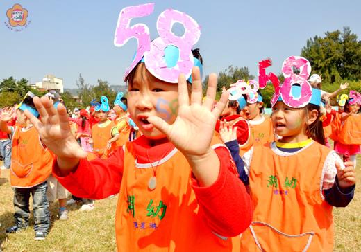 金湖國小昨天慶祝五十八週年校慶;慶祝的方式就是舉辦運動會。 在湖小校慶運動會中,小朋友們追追趕趕,跑跑跳跳,嘻嘻哈哈,吼吼叫叫;在綠色的草地裡、在紅色的跑道上,灑下了金色的陽光,交織了繽紛的童顏。 有些小朋友,臉頰上用彩妝寫上「58」,額頭上緊箍綴著「58」,扮相十分引人注目。六年級的學生黃靖安說,校慶中最動人的,是幼生的接力賽-那麼嬌小,那麼賣力,那麼可愛。 運動比賽中,有一項是八人九腳,考驗小朋友的團結與默契;若是步伐或節奏不一致,同時會有多人傾倒。 五年級的學生洪菱說,有人跌倒了,大家能互相幫忙,感覺很好;輸贏沒有很重要! 在運動會,穿插著簡單的典禮,由校長張木百樾介紹湖小的沿革。張木百樾強調運動與健康的重要,並口頭表揚日前在九十八年全國運動會中拿下女子競技體操成隊競賽第四名的劉曉芸、蔡宜妮、楊鈺婷、葉品嶸。