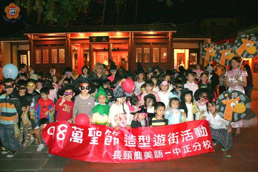 「不給糖,就搗蛋」!金城市區昨晚很萬聖節,包括長頸鹿美語│中正分校、寶貝園地托兒所、東森幼兒園昨晚不約而同地舉辦了「萬聖節親子遊街」活動,小朋友們在師長的指導與陪同下,發揮巧思,打扮成各種新奇造型,浩浩蕩蕩的繞行市區,吸引民眾的注目,也帶來萬聖節的熱鬧過節氣氛。 中國有鬼節,外國人也有萬聖節,近年來,台灣過萬聖節的風氣愈來愈盛,連金門也跟上流行。十一月一日是西方的萬聖節,適逢週日。昨(三十)日晚上,地區長頸鹿美語│中正分校、寶貝園地托兒所、東森幼兒園都分別提前舉辦了「萬聖節親子遊街」活動。 小朋友與老師盛裝打扮,有的裝扮成巫婆、吸血鬼、蝙蝠俠、鹹蛋超人、超人、天使、哈利波特、國王、王子、公主等,造型新穎、服裝豔麗,然後在師長的陪同下,浩浩蕩蕩的繞行市區中興路、莒光路、模範街等老街,沿途表演嬉戲,讓夜晚寧靜的城區傳統街道,頓時熱鬧不少,瀰漫在一股西洋異國情調中。 如同我國的鬼月,在歐美地區,十月三十一日晚上,許多人都會過萬聖節,大家費盡心思化粧,到了晚上,小朋友挨家挨戶玩「不給糖就搗蛋」的遊戲,熱鬧的節日氣息讓萬聖節成了一個最歡樂的鬼節。昨晚金城市區的萬聖節遊街活動,大小朋友又笑又鬧,鎂光燈閃個不停,引來不少民眾圍觀,夜晚城區街道,洋溢著一片熱鬧喜氣氛圍。