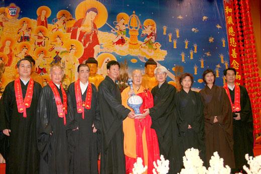 金門地區啟建第三次兩岸和平消災祈福超薦水陸大法會,昨日晚上在縣立體育館舉行點燈祈福儀式揭開序幕,吸引一千多位信眾參與點燃心燈祈福活動,縣長李炷烽率信眾同霑法喜,以祈佑國家風調雨順、國泰民安,民眾能安居樂業、闔府平安。 兩岸和平消災祈福超薦水陸大法會昨日晚上七時三十分在縣立體育館展開,由縣長李炷烽主持晚會,中正國小表演祥獅獻瑞、地藏悲願基金會帶來敦煌韻舞揭開活動序幕,包括福建省政府主席薛承泰、副縣長楊忠全、縣長夫人吳麗鳳、前立委吳成典、縣議員許華玉、洪麗萍及縣府各局室主管、台灣和大陸一百廿多位法師,包括中國佛教會理事長淨良長老、能仁家商董事長明乘長老、台灣佛教會理事長會光長老、華蓮祥德寺住持地皎法師、世界佛教華僧會執行長心茂法師,以及大陸中國佛教協會副會長聖輝長老,也帶領六十八人循小三通來金共襄盛舉,一起點亮手中的祈福燈,共同來淨化人心並祈求國家風調雨順、國泰民安,民眾能安居樂業、闔府平安。 李炷烽致詞時指出,兩岸和平消災祈福超薦水陸大法會在點燈儀式後正式隆重展開,是金門地區八年來舉辦的第三次大法會,前二次受到信眾熱烈支持,志工無怨無悔,功德圓滿完成。李縣長由衷感謝,謝天、謝地、謝神和所有信眾大德,尤其志工不眠不休、無怨無悔付出貢獻,表達萬分謝意。 李縣長說,金門自晉唐迄今一千六百餘年,歷經無數次的戰亂,因而往生者無數,特別是近半個世紀兩岸戰爭為最,舉辦法會的目的是希望以佛法慰藉英靈,祈祝兩岸永止干戈,世界共享和平。他表示,近年來地球暖化,許多地方因氣候變化帶來許多災難,但是很幸運金門這塊佛地是無災、無難,記得八十五年太湖乾涸、八十八年丹恩颱風造成林木斷倒,但是近幾年都沒有大災難,這是大家的恆心、悲願,對所有參與法會的大德表謝意。 中國佛教協會副會長聖輝長老、中國佛教會理事長淨良長老、能仁家商董事長明乘長老及福建省政府主席薛承泰、總功德主代表王振利也上台致詞,語多祝福,參與法會感受無比莊嚴喜樂,祈佑國家風調雨順、國泰民安,民眾能安居樂業。李縣長並致贈聖輝、淨良長老及各法師每人一座高風亮節福慧瓶。 點燈儀式中,在佛教諸山長老引導下,各界首長、功德主及與會人員,以充滿法喜心情,逐一點燈。最後性海法師帶領與會來賓祈福迴向,大眾向菩薩行三問訊禮,為兩岸和平祈福,場面莊嚴隆重。