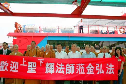 金門地區舉辦啟建第三次兩岸和平消災祈福超薦水陸大法會廿四日起在縣立體育館舉行,大陸廈門南普陀寺方丈聖輝長老及台灣中國佛教會理事長淨良長老等各地高僧共一百多人,昨日分別經由海、空交通抵金參與盛會,受到金門縣長李炷烽及佛教界人士歡迎,共同為兩岸和平消災祈福,讓金門島成為安祥樂利的和平島,讓我們的後代子孫世世代代永續太平。 現為中國佛教協會常務副會長、廈門南普陀寺方丈的聖輝長老昨天率領六十八人法務團,從廈門循小三通管道搭金廈航線客船「馬可波羅號」到金門,縣長李炷烽、金門縣佛教會理事長性海法師、縣府民政局長洪國正、港務處長楊廷標及地方佛教界人士等人都前往碼頭歡迎聖輝長老。中國佛教會理事長淨良、副理事長圓宗長老及台灣省佛教會理事長會光法師、世界華僧會理事長心茂法師等各地高僧六十人,昨日搭乘台金航線各地班機抵金參與盛會,也受到金門縣長李炷烽及佛教界人士歡迎。 金門地區啟建兩岸和平消災祈福超薦水陸大法會已舉辦三次,聖輝長老每次都循小三通管道抵金參與盛會。他表示,近年來兩岸人民與佛教界的交流日益密切,金門和廈門作為兩岸的橋樑,舉辦法會共同為兩岸和平、國泰民安祈福。 據了解,金門地區啟建第一次『兩岸和平消災祈福超薦水陸大法會』,係於2004年6月14日至20日;第二次水陸大法會2006年10月22日至29日,今年第三次水陸大法會於10月24日至31日舉辦,將有兩岸僧侶一百餘人參與。法會活動期間自10月22日至31日,安排佛學講座包括有10月22日下午七時邀請海濤法師主講「懺悔與發心」;10月23日上午八時三十分起至下午七時在城中體育館,由海濤法師主持-八關齋戒;10月24日上午九時在縣立體育館,邀請地皎法師主講「偉大的地藏菩薩」。活動期間,沙美及山外車站均備有交通專車載送民眾,現場備有結緣品與大眾結緣。