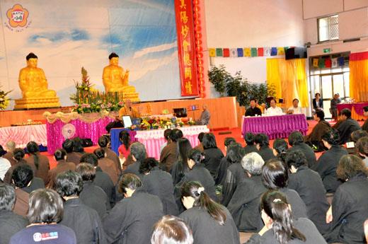 配合金門地區啟建第三次兩岸和平消災祈福超薦水陸大法會,舉辦的佛學講座,海濤法師續為大眾開示法要,海濤法師鼓勵大眾多積善德,多做好事,會有好福報。 縣長李炷烽昨日下午也再度前往法會內壇城中體育館聆聽法音。海濤法師以「吉祥塔」贈予李縣長。 海濤法師說,生命雖然按照個人的業報不一樣,產生了不一樣的輪迴的形式。所謂輪迴的範圍,就是這些神、人、地獄、鬼道、畜生道,不斷的在輪迴,輪迴就是苦。在佛教的教義不要殘殺生命,因為殘殺生命,生命是輪迴的,就會產生業報,佛教徒是慈悲要有智慧,尊重一切生命,培養大眾生命平等的慈悲心。 佛經有一部百喻經,皆說譬喻的故事,其意義甚深。海濤法師也將佛法以深入淺出的故事、簡明易懂的理論傳達出去,幽默風趣的言談,讓在場的善信都很法喜。 配合法會辦理的佛學講座,邀請海濤法師主講「懺悔與發心」、和主持「八關齋戒」;今日上午九時至十一時三十分在縣立體育館的佛學講座,邀請地皎法師主講「偉大的地藏菩薩」。 配合古寧頭戰役六十周年紀念,金門地區啟建「第三次兩岸和平消災祈福超薦水陸大法會」,將從10月24日至31日。法會點燈祈福晚會安排今(24)日晚間7時至9時30分在法會外壇縣立體育館拉開序幕;10月25日至10月31日為法會正式啟建。