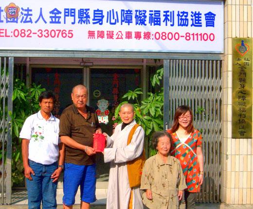 太武山海印寺濟弱助貧,將來自四方的善款捐贈給社團法人身心障礙者福利協進會,以及二十二位會員。海印寺表示,這些善款點滴匯聚的善心,加以善用在每一位需要的朋友身上,才能讓來自社會的愛和溫暖發揮更大的作用。 社團法人身心障礙者福利協進會每年都會接到太武山海印寺的熱心捐贈,自八十五年起迄今從不曾間斷,今年也不例外。海印寺今年由宗博師父代表,親自將這筆善心捐贈送達協會以及身障者手中,表達關懷之意,也幫助需要的民眾。 社團法人身心障礙者福利協進會指出,海印寺自八十五年起每年捐助善款協助會務進行,另外也捐款給二十二位生活上較需幫忙的朋友,他們係經過理事會評估,包括老人家、弱勢鄉親等,致贈慰問金表達關心之意。 今年度海印寺由宗博師父代表捐贈,她親自將海印寺的善款送到社團法人身心障礙者福利協進會,以及獲贈的會員手中。她指出,來自四方民眾的捐款,每一分都匯聚無比的愛心和善心,海印寺謹慎善用每一位人間菩薩的捐款,讓所有人的愛心化為大愛,幫助真正需要的人。 社團法人身心障礙者福利協進會表示,感謝海印寺發揮菩薩救苦救難之精神,展現大愛和義行,每年給協會和弱勢鄉親實質助益,並主動獻上關懷,和其他熱心民眾和機關一樣,讓身障朋友受到加倍的愛與關懷,化解身、心之障礙。