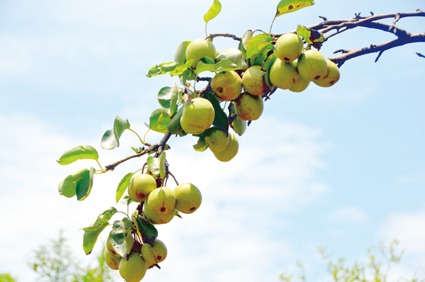 水梨高高掛,夏天消暑好水果! 農民自家種的水梨,目前正結實纍纍,想要享用,就得等待成熟時。