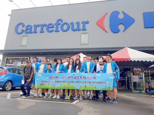 為協助國(高)中青少年朋友及早規劃職涯,認識就業市場發展趨勢,勞動部金門就業中心18日辦理金城國中之「提升國、高中學生就業準備力計畫」-家樂福金門店企業職場參訪活動。 因應疫情需求,參訪學生至家樂福金門店全程佩載口罩,並接受量測額溫及噴灑酒精消毒雙手,依序分梯進入店家進行參訪活動。活動一開始由家樂福主管熱情的歡迎城中學生到訪,接著進行商品物流及銷售流程解說,讓參訪學生了解目前商品營運狀況;也觀摩由店員實地操作正確的作業流程,學習建立顧客信任,會後則安排雙向綜合座談,提供學生與店家間的意見交流及回饋。期望能讓學生認識職業環境實況、了解職場上應具備的職能條件,以緩和從學校零經驗至全職就業間轉銜落差,釐清職涯方向提高穩定就業力。 金門就業中心張哲銓主任表示,勞動部勞動力發展署推動「提升國、高中學生就業準備力計畫」,由各就業中心與轄區內國高中(職)學校合作,讓學生透過寓教於樂的職場參訪及講座等各種方式,協助學生提前展開自我探索與職涯規劃。地區國(高)中若有意了解或申請相關計畫,歡迎來電洽詢,電話(082)311119分機8132姜小姐。
