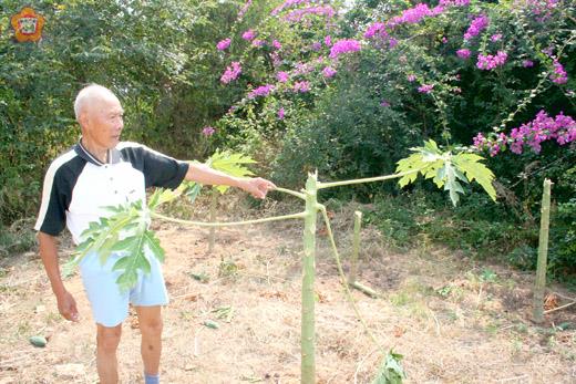 金沙鎮碧山陳姓老翁種植的木瓜樹,一夕之間,遭人攔腰折斷,木瓜果實散落地上;陳姓老翁氣憤不已,大罵「可惡」,並報警處理,要揪出任意破壞的人,繩之以法。 陳姓老翁在三山里公所左前側空地種植十株木瓜樹,皆已經開始結果;不料,在一夕之間,有六株木瓜樹遭到攔腰折斷(見圖),果實散落一地。另有四株,遭到連根拔起,陳姓老翁的栽培心血化為烏有,相當的氣憤。 據陳姓老翁的說法,可能是遭到青少年隨機破壞,用意為何就不清楚了,也可能是好玩。不過,陳姓老翁在木瓜園四週,卻遍尋不著遭到折斷的木瓜殘枝,這是令人大惑不解的地方。 陳姓老翁看到自己辛苦種植的木瓜樹一夕化為烏有,不禁大罵「可惡」,並希望警方能揪出破壞的人,依法究責。