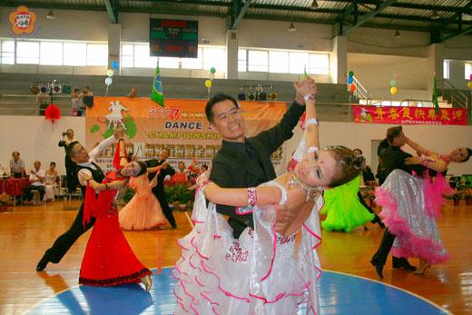 2009金門縣第八屆縣長盃暨全國運動舞蹈錦標賽昨日下午在金門高中體育館隆重展開,計有十三個縣市、二百多位「舞」林高手齊聚一堂參與三十一組項目角逐,飆舞競技觀摩,現場也湧入不少愛舞人士到場欣賞,場面相當熱絡,全部賽程並在昨日晚間頒獎閉幕。參賽選手今日將循小三通前往大陸參加廈門市舉辦的海峽兩岸體育舞蹈邀請賽,以舞會友、切磋舞技。 第八屆縣長盃暨全國運動舞蹈錦標賽昨日下午一時起在金門高中體育館進行選手、裁判報到展開暖身後,正式展開各組初、複、決賽,下午四時登場的開幕典禮,由縣府主任秘書盧志輝主持,立委陳福海辦公室徐主任、縣府教育局課長許能麗、中華民國舞蹈運動協會副理事長林奇峰、中華民國舞蹈運動協會裁判主委王允文與大會執行長曹進來、副執行長王異生及金門縣舞蹈運動委員會主委黃天來等到場欣賞精彩舞蹈。 縣府主任秘書盧志輝代表李縣長歡迎來自台灣的參賽選手與金門的同好交流,他指出,縣長盃暨全國運動舞蹈錦標賽在全國總會支援下連續舉辦八年,感謝台金舞蹈選手的支持響應與熱烈參與,讓這項活動能持續不輟。 盧志輝表示,運動舞蹈從無到有連續舉辦八年,這項運動在金門也逐漸落實生根,運動人口也逐年成長,經常有很多的舞蹈愛好者全心投入舞蹈運動,令人欣喜,這也代表地區社會繁榮進步的象徵。並指出這項活動最大贊助者是金酒公司,連續八年來感謝金酒公司大力幫忙,讓活動能舉辦得有聲有色、非常熱鬧。參賽的舞蹈好手有不少來金門參賽多次,他也希望大家努力將舞蹈運動推動到金門每一鄉村、每一角落,甚至全國每一個地方,更希望舞蹈比賽為地區的運動再創高潮。 昨日比賽包括地主隊金門縣,共有來自宜蘭、台北、桃園、台中、雲林、高雄、新竹、花蓮:::等十三個縣市的舞林高手共二百一十四人參與,分為職業A組、職業新星A組、職業新星B組、職業C組、業餘A組、業餘B組、壯年A組、壯年B組、新人組、準新人組A、準新人組B、松柏長青組、標準單項組、成人社交單項組、兒童標準單項組等進行三十一個舞蹈項目的比賽。 比賽中女選手的閃亮性感服裝打扮,或和男選手搭檔的清涼火辣展現舞技演出,以及職業選手的純熟舞技表演,讓到場鄉親大開眼界,不論是摩登舞的華爾滋、探戈,或拉丁舞的吉魯巴、恰恰、倫巴、捷舞等,選手隨著音樂婆娑起舞,秀舞技、比舞姿、舞動青春、跳躍人生,舞出健康活力,現場加油聲此起彼落。而參賽的小選手們人小但跳舞的本領可不小,扭腰、擺臀,每個舞步都相當精準,也成為注目的焦點。