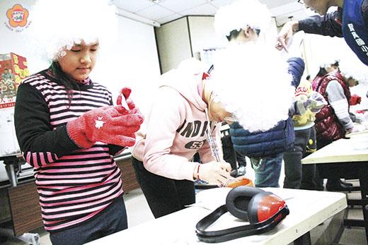 華山基金會進校園宣導,賢庵國小七十三位低年級學生,在志工及家長協助下,欣賞「老奶奶與機器人」影片,在老花眼鏡讀稿,帶上手套將皺皺的發票撫平,體驗中實際感受長輩們年老後生活的不便,藉以籲請學子發揮同理心、尊重老人。全校小朋友也掏出零用錢做愛心,共捐款兩萬柒仟元,投入華山敬老基金會募捐箱,希望幫助三失(失能、失智、失依)長輩,過個快樂團圓的新年。 賢庵寒冬歲末送暖!華山基金會歲末發起「愛老人、愛團圓」活動,以推廣「老吾老以及人之老」理念,落實公益生活化,並贈送年菜(含年禮、元宵)給全台弱勢獨居長輩,日昨華山志工走訪賢庵國小進行宣導,全校低年級共73位小朋友,體驗老化活動,觀賞「老奶奶與機器人」的影片,最後全校學生並掏出零用錢做愛心。 賢庵國小校長楊肅健也在活動開場時向學生說明,老化是每一個人必經的過程,大家要體貼老人生活的不便,尊重老人的生活權利。接續低年級學生分6組體驗人老化的感覺。小朋友戴上白髮,扮演年長的老者,一位戴老花眼鏡讀稿,另一位戴耳機複誦,體驗眼花耳聾的不便;亦或戴老花眼鏡串珠,夾豆子,戴上手套將皺皺的發票撫平,平鋪、疊放在一起,等人衰老後手腳不靈活的體驗。小朋友一一上台並在怒笑聲中,了解老人生活的不便。 其中,「老奶奶與機器人」,影片介紹老奶奶孤單無依,生活與機器人為伴,最後走到人生盡頭,機器人仍要為老奶奶裝上電池,讓人看了不禁為之動容。全場小朋友一反平時焦躁、缺乏耐心,而是靜寂無聲的觀賞,深深的被影片中的機器人所感動。並在觀賞過後異口同聲表示,以後一定要好好陪陪阿公、阿嬤,不要讓他們感到孤單無依。 全校學生在輔導組張雙佳老師的協助之下,1-6年級各班(包含幼兒園),已悄悄的將自己的零用錢裝進華山「愛老人、愛團圓」的禮金袋。由各班導師收齊總計兩萬柒仟元的禮金,由幾位學生代表投入了華山敬老基金會募捐箱,希望將愛心送給全台三失(失能、失智、失依)的長輩,讓他們能夠過個快樂團圓的新年。