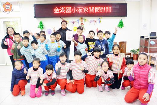 金湖國小師生送愛到大同之家,日昨601、403班學生,在胡欣佩、李怡芯兩位老師的帶領下,前往大同之家安老組關懷長者,除了以舞蹈以及戲劇演出娛樂長者,小朋友分別認養一位長輩並協助阿公阿嬤動手完成小花盆,長者在學童的陪伴下,度過溫馨快樂的時光。 金湖國小601班及403班師生,前往大同之家送愛心,在老師的帶領下,學生以舞蹈及戲劇演出為長輩們帶來歡樂,每位小朋友皆認養一位長輩,協助他們完成手作小花盆,讓長輩們開心地將自己的作品帶回房內擺設。師生一起做愛心,小小的愛心義舉,展現童稚的樸實與天真,也陪伴長輩度過溫馨的上午時光。 李怡芯老師與小朋友發揮愛心,將日前參加園遊會之愛心義賣所得三千三百多元,捐贈予大同之家長輩,展現小朋友學習付出及助人之大愛精神。 大同之家主任楊志斌致贈感謝狀給金湖國小601班及403班,感謝胡欣佩、李怡芯兩位老師與學生到家做愛心,謝謝小朋友們發揮助人義舉,嘉惠大同之家長輩們。而師生到訪關懷長者時,慈暉志工隊隊長沈素英等志工團隊,也現場協助服務長輩,共度一個溫馨又快樂時間。