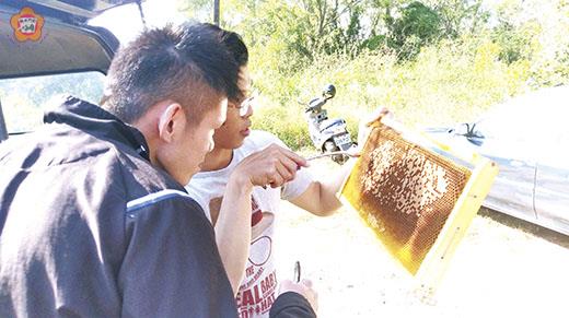 網路的無遠弗屆,為銘傳海青班的學生與地區養蜂業者搭線,海青班的畢業學生黃誠信同學,由於想要瞭解養蜂產業,透過社群網站與地區養蜂業者取得聯繫並表達動機,業者翁慶佑也樂於分享自己在金門多年以來的飼養經驗,並且希望透過這樣的交流,彼此互相成長,精進自己的養蜂技術。 來自馬來西亞的黃誠信,跨海來到金門就讀銘傳大學的海青班學習烘焙技巧,他是在去(一○五)年的十二月學成畢業,黃誠信說,他的父母親是在馬來西亞從事的是棕櫚油的生意,來到台灣學習烘焙的過程中,與父母討論後,認為養蜂產業在馬來西亞的收入不錯(馬來西亞的蜂蜜售價,約在一百至一百五十元馬幣,折合台幣約在八百到一千一多左右),所以思考過或許是一項值得進入的產業,因此讓他想要對飼養蜜蜂能有較多的瞭解。 黃誠信指出,與金盤山養蜂場的老闆翁慶佑結識,是透過社群網站(Facebook)上得知的,老闆在FB上刊登徵人啟事時,他無意中得知原來金門有人在養蜂,然後發訊息詢問之後,並獲得老闆的首肯,願意撥冗指導他相關技巧,讓他得以深入瞭解養蜂的基本技術與一些入門知識。 「江湖一點訣」,生意場上總是有人不願意將技術傳授給他人,深怕徒弟出師後會危及師傅的事業,因此常會有留一手的狀況,不過翁慶佑大方的表示,他認為許多產業走向死胡同,往往是因為彼此不願意將技術傳授給他們,指導徒弟也會留一手而造成的;翁慶佑進一步說明,他指導黃同學的都是養蜂需要具備的技巧,各蜂場都是大同小異的,而養蜂產業之所以無法持續發展,就是因為多數人怕他人偷學技術,因此他覺得透過指導有興趣的人進入這個產業,對於整體產業的提升以及自己技術的強化都是有幫助的,而且對於養蜂產業是有正向發展。 而翁慶佑表示,他指導黃同學的,主要是讓他了解養蜂最重要的基本環節「飼育蜂王」及「移植幼蟲」等基本技巧,這也是養蜂最重要的過程,只要這項技術成熟的話,未來在採集蜂王漿、培育優質蜂王方面就會更熟練,也能在養蜂過程中較不會有挫敗感。 馬來西亞的蜜蜂飼養,多是利用「樹洞」,讓蜜蜂在中空的樹中築巢,黃誠信說,台灣用蜂箱的飼養方式,他認為很適合年輕人來學習,方便飼養與整齊劃一的排列,是能夠引進馬來西亞去推廣的。而黃同學家族從事棕櫚油事業,他則認為兩者並不會衝突,只是要在馬來西亞跨入養蜂產業,「蜜源」的取得則是他覺得需要克服的難關之一,因為棕櫚樹無法產生花蜜。 黃誠信指出,此次向老闆翁慶佑請教,也是希望能夠打好養蜂的技巧,日後回國後再繼續深造,強化自身的技術。 此外,天然災害對於養蜂的損害,談到去年重創金門的颱風,翁慶佑表示,風災對於設備損失多少都一定會有,以他而言是在蜂箱的損壞,因為當時的樹倒木,總是會造成蜂箱的裂縫等,不過他也慶幸的指出,之前的颱風對於蜜蜂的數量與規模損害較少。 近年來蜜蜂對於氣候的敏感度很高,翁慶佑說,人為可以控制範圍越來越沒辦法克服氣候變化,他舉去年的霸王寒流,讓他措手不及而造成損失;不過今年事先準備,但是氣候是屬於暖冬,這也讓蜜蜂行為有失常的狀況,蜜蜂在這種好的氣候,蜂蜜與蜂王漿產量沒有出現,蜂群一樣忙碌但卻沒有去採集等量的花粉,等於說在現在這個季節,卻出現夏天的行為,不過產量卻停留在冬天。
