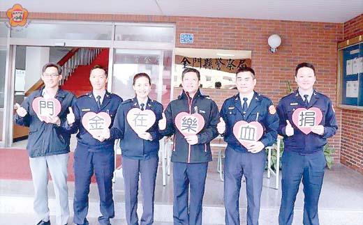 財團法人台灣血液基金會台北捐血中心應金門縣政府之邀,於本(1)月4日至11日前進本縣辦理捐血活動,首(4)日下午在金門縣警察局大門口設點服務,金門縣警局局長許慶豐率先捐出熱血,員警與民眾反應熱烈,一天下來,總共捐輸超過二萬五千C.C.以上之熱血。 此次「快樂捐血,愛在金門」捐血活動,台北捐血中心捐血車於1月4日至11日期間,巡迴本縣金門縣警察局、金防部、金門大學、金門酒廠及各鄉鎮公所等九個定點提供捐血服務。 四日下午民間第一站捐血活動特選在縣警局辦理,當天下午1時30分開始時,即有不少民眾特別趕在上班前參與捐血,不少警察同仁則利用勤務空檔響應活動,而警察局長許慶豐也抽空挽袖捐血,並致贈台北捐血中心工作人員金門特產,感謝他們的辛勞,並預祝新年快樂。 而在活動過程中,金門縣警察局也特別擺設宣導攤位,對捐血的民眾進行犯罪預防及交通安全宣導,讓熱心捐血的民眾,做公益之餘還可長知識,拿宣導品,讓活動更加熱鬧。 捐血不僅可以助人,對於健康更有許多助益!縣警局局長許慶豐說,對於這種有意義的活動一定全面支持,並鼓勵警察局同仁踴躍參加,也歡迎台北捐血中心定期到局辦理捐血活動。