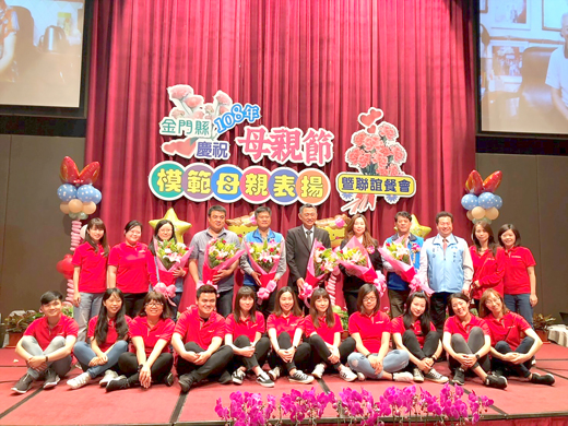 金門縣政府為慶祝109年度母親節,訂於5月9日在金湖飯店舉辦慶祝及表揚活動,將表揚14位模範母親,感謝她們平日持家辛勞,並透過聯誼餐會讓家庭團聚一同慶祝母親節。活動中亦規劃國樂及宣導家務分工的話劇表演等,以豐富活動內容。 榮獲本縣109年度模範母親:金湖鎮│張美蓮女士、黃能發女士、李愛環女士;金寧鄉│許圓面女士、黃美環女士、王招桂女士;烈嶼鄉│洪烏宙女士、洪金猜女士;金沙鎮│蔡愛治女士、陳選女士;金城鎮│陳秀月女士、龔惠萍女士、顏翠密女士、李羨美女士。 為因應肺炎疫情,縣府在活動場域及各項活動細節均有採取防護措施,廳內會保持空氣流通,且於用餐前場地皆會進行紫外線殺菌作業,而賓客進入飯店前,於B1停車場、1樓大廳皆備有殺菌地毯,本次餐會桌次安排也加大距離,避免群聚及降低接觸之機會。