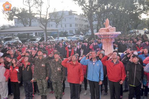 迎接106年元旦,金防部由中將指揮官郝以知帶領眾官兵,踴躍參加金門各鄉鎮舉辦的元旦升旗典禮。典禮開始前,金防部官兵以宏亮的軍歌及答數進入會場,高昂的士氣吸引民眾目光,當唱國歌及國旗冉冉升起,官兵一同向緩緩上升的國旗致敬。 郝以知表示,參加升旗典禮,就是最好的愛國教育,而官兵不畏寒冷的熱情參與,展現出官兵愛國心,發揮「軍民一家,同島一命」的精神。 典禮結束後金城鎮公所也舉辦全民健走活動,本次健走由縣立體育場出發,軍民們也為新的一年邁進,活動中官兵不斷揮舞著國旗,鼓舞士氣,透過此次活動讓軍民之間感情更加融洽,郝以知也在終點一一向軍民拜年,活動接近尾聲,太陽也緩緩昇起,迎接著新的一年到來。