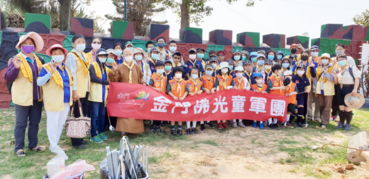 響應世界地球日,國際佛光會金門協會與金門佛光童軍團於昨(三)日舉辦「淨灘活動」,佛光山金蓮淨苑住持永勤法師說,「拂塵除垢」不只是清淨外在的環境,也期許大家能藉著淨灘來洗滌內心。 金門海域周邊環境優美,尤其是金城雄獅堡海灘,鄰近金門人口最多的金城鎮,更是不少人休憩散步的好地方,不過因為海灘時有海漂垃圾,或是部分民眾隨意丟棄的垃圾,難免造成環境亂象。 昨日下午二時左右,由永勤法師、如浩法師、國際佛光會金門協會會長吳培甄、督導洪永善、副會長盧志榮,佛光童軍團總團長莊彩燕、行義團長黃大洲、童軍團長許安仁、幼童軍團長蘇怡之等人,會同佛光會金門協會與金門佛光童軍團,前往金城鎮雄獅堡海灘進行淨灘活動。 住持永勤法師表示,環保工作是相當重要的,透過眾人淨灘,將海岸邊際的垃圾撿拾乾淨,能夠還給海灘優美的環境;而在淨灘的過程當中,也能夠讓大家內心進行一下心靈的環保。永勤法師分享了「拂塵除垢」的佛教故事,希望參與者不只僅是整理了外在的環境整潔之外,也可以掃除自己內心中的塵垢。 會長吳培甄指出,因為這次肺炎疫情的影響下,許多活動皆在防疫的因素下,不得不暫停或是取消辦理,不過目前國內疫情都在穩定控制當中,加上呼應世界地球日的環保理念,因此舉辦昨日的淨灘活動,一來為環境整潔盡一己之力外,二來戶外環境空曠,也可避免過多人群聚集室內。