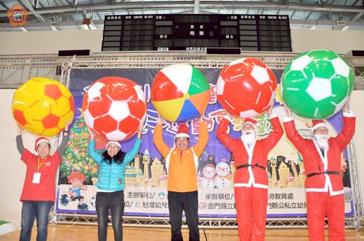 聖誕冬至慶團圓,為讓家長與孩子共同歡度一個溫馨愉快假期,金門縣政府與台灣幼兒體育學會昨在金門縣立體育館推出「105年聖誕冬至慶團圓—親子運動會」活動,由參議許寬代表陳福海縣長主持,教育處副處長陳金文、科長葉麗珠、台灣運動社會協會理事長金大管理學院院長董燊、金城幼兒園園長許碧華,也到場與180對親子、數百位大小朋友一起同樂,歡聲雷動的笑語,不僅驅走冷冽的冬寒,也為體育館迎來歲末年終的熱鬧氣息。 這場以「聖誕冬至慶團圓│親子運動會」為主題的活動,於昨日上午9時30分起在縣立體育館熱鬧開場,從大型充氣氣球中「破繭而出」,許寬和陳金文討喜的聖誕老公公扮相,立即引來現場一波接一波的驚呼,系列活動也在許寬載滿祝福的致詞後,宣告正式開始。 許寬說,聖誕節以紀念耶穌和發揚基督的精神為主軸,現代是一個大家分享彼此對於家人、朋友與他人的愛與關懷的日子,而中國人傳統過冬至,時間訂在陽曆十二月二十二日或二十三日,此時,家家戶戶都要準備應節的祭品,尤其湯圓是中國人很早就製作發明的一種食物,因在冬節使用,所以又稱為「冬至圓」,將西洋人過耶誕的精神和中國人傳統冬至吃湯圓的習俗結合在一起辦活動,也算是別開生面,雖然不能說絕無僅有,但這樣的活動多了一份對社會的關懷,也帶有象徵團圓及添福添歲的意義。 許寬表示,這項活動以親子健康操和充滿挑戰性的活動闖關為主,活動更透過「擁抱大湯圓」等深具意義的活動,希望藉此溫馨傳情,同時促進更和諧的親子關係;也期待藉由家長與幼兒的共同參與,為打造幸福金門加分、為培育優質的民族幼苗營造更友善的環境。 昨日,這項活動內容精彩豐富,除精心設計「親子互動遊戲」、「兒童樂園」、「聖誕HOHO」、「爆漿湯圓」、「擁抱大湯圓」、「『鉛』載難逢」、「團團圓圓」、「闖關活動」等親子活動,現場也讓親子們動手做、親自享受傳統搓湯圓的樂趣。 此外,陳金文在活動中表示,106年度縣府將賡續辦理系列親職教育活動,宣導適齡適性均衡發展之教保服務理念,如教養與溝通等,以增進家長育兒能力,另縣長陳福海特別感念金門縣各幼兒園教保服務人員之用心,犧牲奉獻,積極參加增能研習,提升專業知能,希冀共同提升教保服務人員素質及家長之教養能力,奠定良好健全幼兒教育基礎,建立健康豐富快樂學習資源環境,建構有利於幼兒發展的支援體系,並逐步實施普及化與優質化的幼兒教育,保障幼兒受教品質,提高幼兒學習競爭力。 而藉著活動的參與,他也希望在場的大小朋友,平常要多運動,讓身體更健康、更茁壯,同時也要用更健康的心態,迎接新年度的到臨。