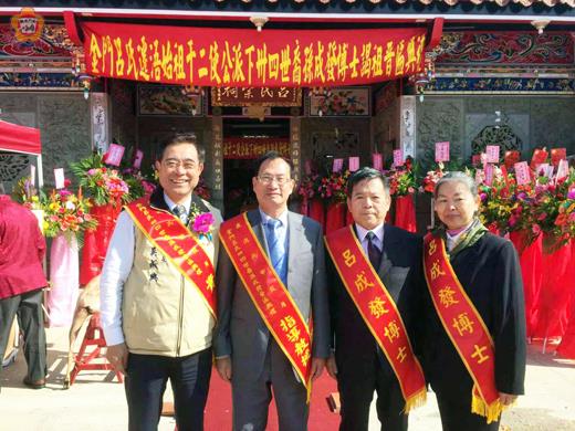 現服務於金門縣選舉委員會的呂成發組長,自軍中退役轉任公職以來,勤學不輟,並修得銘傳大學社會科學碩士;再考取福建師範大學深造,取得文學博士,並於日昨在金湖西村呂氏宗祠晉匾,叩謝天地,敬拜先祖,感恩庇蔭,副縣長吳成典特代表赴臺公幹的縣長陳福海親往道賀,同時致詞推崇呂博士的向上精神,值得後進仿效學習。 儀式進行前,呂博士賢伉儷和「博士匾」與「牲禮車」在中、西樂隊及三十餘輛車隊簇擁下,從其下湖老家浩浩蕩蕩出發,經溪邊、鵲山、黃海路、新市里、林兜等地,再繞回西村呂氏宗祠,沿途鞭炮聲不絕於耳,民眾駐足觀看同喜,熱鬧非凡。 此次晉匾儀式採古禮進行,鼓嚴三通、奏大樂、鳴炮、奏清樂,各相關禮生就位,主祭者呂博士由長老陪祭,面東祭酒,香案前行祭禮,用三獻大禮,初獻、亞獻及終獻,備滿漢全席,對主祭者予以讚詞,備祝文向列祖列宗稟報,在場除金門呂氏、四岳宗親長老諸親友外,尚有呂成發博士指導教授陳慶元、國立金門大學主任秘書呂立鑫、福建省政府秘書長翁明志、選舉委員會各委員及監察小組召集人盧志輝等人觀禮,這場盛大隆重的晉匾儀式,最終也在眾鄉親朋好友的祝福聲中圓滿完成。