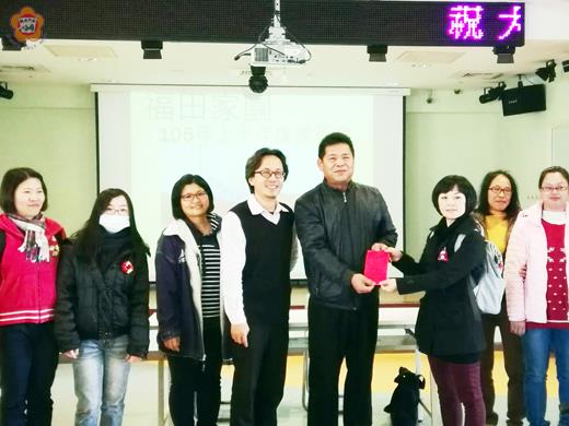 金門大學進修部社工系的學生們,在聖誕節前夕,在老師的帶領之下,前往福田家園進行關懷慰問,同時將日前獲得學習服務微電影佳作的部分獎金捐出,用於補充院生的生活所需,希望此舉能拋磚引玉,讓院生獲得更好的照護。而福田家園余國康主任除了感謝金大社工系進修部學生的善舉,也希望學生能常回福田關懷身障院生,讓院生能感受到大家的溫情。 金大進修部社工系的師生,於今年在該系教授楊志誠的帶領之下,將前往福田家園進行服務學習的狀況拍攝成一部微電影,並且獲教育部青年署全國大專院校服務學習微電影的佳作以及最佳人氣獎,獲頒獎金新台幣一萬元的獎勵。因此金大社工系的學生們,特別利用聖誕節前夕(二十四日)到福田家園進行耶誕活動的機會,再次前往服務,並將這筆獎金捐獻出來,讓院生補充相關生活物資。 因此社工系進修部二年級學生楊舒晴、林家卉、高郁婷、黃蓉等人,特別利用今年福田家園的耶誕活動中,在社工系兼任教師楊蕙禎的陪同下再度造訪福田家園,同時邀約一年級的進修部學弟妹們一同在歲末來臨前夕,共襄盛舉,將愛與溫暖送到福田。活動過程中,除了協助聖誕活動的進行之外,更從教育部青年署獲得的獎金中捐出五千元,另有一善心人士也主動捐出五千,湊足一萬元,寒冬送暖捐贈給福田家園院生,希望能讓院生獲得更好的生活照護。 福田家園主任余國康除了感謝金大社工系進修部學生的善心,亦歡迎學生能常回福田來關懷陪伴身障院生,讓院生能感受到社會的溫情,並透過活動,讓身障院生能有更好的身心與情緒發展。