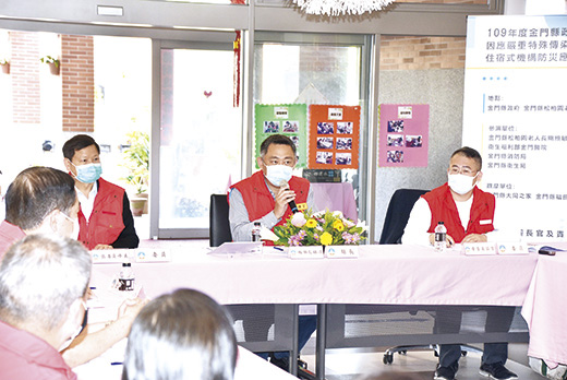 新冠肺炎疫情未退,金門縣政府為強化防疫整備作業,於昨(29)日上午在松柏園老人長期照顧中心辦理「109年度金門縣政府因應嚴重特殊傳染性肺炎住宿式機構防災應變示範觀摩演練」,模擬松柏園老人照顧中心有一名長者出現疑似新冠肺炎症狀,緊急送醫經採檢後確診,後續啟動一連串相關防疫、隔離、消毒措施。為落實防疫,採異地演練,演練人員在松柏園二樓進行,縣長等與會來賓則是在一樓觀看演練直播。縣長楊鎮浯強調,防疫「沒有做得太多,只有做得不夠」,縣府會盡量超前防疫,希望在金門持續保持現狀,給鄉親一個安全的環境。 昨日觀摩演練由縣長楊鎮浯親自主持,特地邀請前疾管局局長、現任三軍總醫院張峰義教授,以及基隆長庚醫院感染科主任黃協賢蒞臨指導,並邀集縣府相關局處,包括衛生福利部金門醫院副院長董文雅、消防局局長翁宗堯、行政處處長陳祥麟、衛生局副局長李金治、社會處處長董燊、副處長李廣榮及轄內住宿式機構代表,共同參與本縣機構防災應變示範觀摩演練。 社會處表示,金門現有住宿式機構3家,分別是松柏園老人長期照顧中心(104名養護長者)、福田家園(104名身心障礙者)以及大同之家(養護長者27人、安養83人,共110人),合計共有養護長者131人、安養長者83人、身心障礙者104人。 縣長楊鎮浯表示,新冠肺炎為全球帶來危機,台灣無論是中央政府或地方政府,都戰戰兢兢地進行防疫工作,對疫情作控管,目前比較潛在的危機應該屬於所謂群聚型,或是住宿型機構的類型,一旦爆發的話,可能數量都是比較大,因此這次選在松柏園老人長期照顧中心進行演練,有其必要性。 楊鎮浯表示,金門的醫療能量比較有限,雖然金門醫院和衛生局等第一線人員都是不眠不休地防疫,但在整體醫療能量有限之下,如果在這種住宿機構出現群聚感染的話,對金門的壓力是非常大。所以社會處很早就著手規劃整備,也感謝松柏園以及福田家園多次參與,希望讓這樣的風險盡量降低。 楊鎮浯同時感謝張峰義教授和基隆長庚醫院感染科主任黃協賢蒞臨指導,相信在兩位專家的協助之下,能夠把演練做得更好,藉由兩位專家的專業,指導演練需要精進之處,讓演練可以達到最大效果。 楊鎮浯強調,防疫「沒有做得太多,只有做得不夠」,我們想得到的就盡量超前去做,希望透過大家的努力,能夠讓疫情在金門持續保持現狀,也希望能給鄉親一個安全的環境,讓鄉親跟疫情不要沾上邊,讓金門的鄉親在防疫上不需要有恐慌。 社會處表示,住宿式機構防疫演習是轄內機構防疫的一環,自從疫情發生,金門縣政府特別留心機構防疫,因為機構人口密集,易發生群聚感染,一旦發生群聚事件,會導致罹病長者重症之風險相對高,救治成本之醫療資源亦是本縣難以負荷的。此外,住民和工作人員因暴露而被隔離時,需要緊急的安置空間和額外的支援照顧人力,亦是縣府應先超前因應的議題。 社會處指出,縣府預定的這次機構防疫演練,也針對幾個主題,包括預防機構感染及群聚之感染控制與整備策略、機構疑似與確診案例處理流程、確診案例之疫情調查及風險評估、倘有確診案例之住民安置與照顧人力安排等分別進行桌上演練及實地演練。這段期間,社會處已完成多項防疫整備作業,包括:定期召開防疫會議、公告禁止探視規定、防疫物資整備、充實機構防疫人力支援措施、防疫安置備援空間調用與合作、專家諮詢輔導與演練。 社會處表示,自4月15日開始進行各機構的相關防疫整備應變工作,也感謝松柏園、福田家園以及大同之家多次進行內部相關演練。縣長楊鎮浯期望整合社政、衛政、醫療、消防等單位,循落實中央流行疫情指揮中心有關衛生福利機構因應發生新冠肺炎確定病例之應變整備作戰計畫建議之指示,充分展現縣府相關單位相互支援合作,增進防疫單位及機構防疫自主應變能量共同防疫、超前部署提升整體整備,透過分倉分流安置計畫,確實規劃防疫動線,落實各項整備作業,讓本次演練更臻完善,給本地鄉親一個安心的生活環境。 昨日演練內容模擬松柏園老人照顧中心有一名長者出現呼吸喘、發燒、臉色蒼白、血壓血氧低等狀況,疑似有新冠肺炎症狀,立刻安排防疫專車送至醫院。經醫師評估診療,該名長者胸部X光檢查出現肺炎,診斷疑似新冠肺炎,立即採檢通報衛生局,而衛生局接獲疾管署通報採檢結果為新冠肺炎陽性,立刻啟動接觸者調查及風險評估。事後匡列同區住民11人、工作人員9人,啟動居家隔離,而未直接接觸個案或同病室住民,需自主健康管理14天,松柏園接獲衛生局通知後,啟動安置計畫。演練內容均實兵操演,為落實防疫,採異地演練,演練人員在松柏園二樓進行,縣長等與會來賓則是在一樓觀看演練直播。 演練結束後,三軍總醫院張峰義教授、基隆長庚醫院感染科主任黃協賢兩位指導委員對於演練過程流暢且內容詳實給予高度評價。張峰義建議,落實平日訪客管理,若真有確診情事才能找出感染源,排班應避免交叉感染風險,另外洗手酒精應足量才能達消毒效果,務必確實穿戴防護裝備。黃協賢建議若有疑似個案即可提高防護裝備穿戴等級,本次演練規劃完善值得嘉許。 縣長楊鎮浯總評肯定本次演練的用心,規劃設計務實詳盡,相關局處單位須依據專家委員的指導,修正調整的重點有兩點,因本縣醫療資源有限,必須藉由演練確實檢視防疫是否有精進之處,首