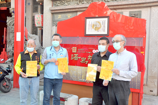 受新冠肺炎疫情影響,今年「金門迎城隍」所有動態活動喊停,但由金門縣文化局協助浯島城隍廟辦理的「浯島城隍廟文物特藏館」,將於農曆四月初九(國曆五月一日)請佛日當天辦理開展;金門縣長楊鎮浯昨日下午四時許,偕同文化局長許正芳、金城鎮長李誠智、浯島城隍廟管理委員會主任委員楊耀芸等人,共同主持開館儀式,並仔細參觀廟方保存的珍貴文物。 縣長楊鎮浯表示,「浯島城隍廟文物特藏館」的開館,象徵「防疫不防藝」,以不同型態的活動,在疫情中展演迎城隍的珍貴文物,期待以靜態的廟會活動,保有金門的傳統。他並指出,「金門迎城隍」為本縣唯一登錄為國家重要民俗的無形文化資產,每年的迎城隍遶境活動,更是結合觀光的金門重要宗教民俗活動,感謝文化部三年補助五鄉鎮進行文物普查工作,更欣見城隍廟和文化局將文物完整規劃保存陳展,同時結合文創商品推出,更展現金門宗教文化深厚的底蘊。 楊縣長在參觀城隍廟文物展出同時,也不忘擲筊祈求城隍爺讓新冠肺炎疫情趕快落幕,希望大家繼續加油。 金門縣文化局指出,「金門迎城隍」為本縣唯一登錄為國家重要民俗的無形文化資產,每年農曆4月12日是後浦浯島城隍廟的遷治慶典,今年又逢遷治340周年,原本金城鎮公所要盛大舉行的「浯島城隍文化觀光季」,卻受新冠疫情影響,擔心有群聚感染之虞,不得不將所有動態活動喊停。「金門迎城隍」的歷史十分悠久,並保有閩南傳統廟慶特色,不僅是地區重要的信仰慶典,近年更是縣府發展觀光重要的號召與宣傳利器之一。 「浯島邑主城隍」原是在金門城坐鎮顯靈,清康熙年間隨總兵陳龍移駐後浦(即現金城鎮市區),自此相沿三百多年來,城區四里民眾於遷治日的農曆四月十二日舉辦巡安大遊行,為金門最盛大、也是保留前清古制而受矚目的廟會。 金門縣文化局於107年透過辦理「107-109年金門縣金城鎮宮廟宗祠文物普查建檔計畫」案,深入金門金城地區聚落在地傳統聚落宮廟宗祠,普查宮廟宗祠公有祭拜類相關文物,整理出一批浯島城隍廟所典藏的文物,有於1993年重建城隍廟時留存下的大量舊廟木構件,經專家學者做價值初判,文物中有不少明清時期的重要文物,其中一組古色古香造型的香擔,為後浦城隍廟在歷年修建後曾至古地城隍廟進香請火時使用,一邊置香爐,內部燃燒源源不絕的香末、香柴,另一邊放置香末、香柴等作為添火之用,此物為光緒元年(1875)由團練總局等集資購置。 金門縣文化局指出,民間信仰中認為香火的傳承非常重要,進香請火的儀式更象徵著城隍爺靈力延續到後浦,庇佑更多人們,而文化局為讓所有民眾能夠親見「金門迎城隍」文化歷史場域~浯島城隍廟所典藏的文物,於108年特別協助城隍廟管理委員會於廟前戲台地下室舉辦「金門浯島城隍廟典藏文物特展」,獲得廣大群眾的熱烈回響。 在遵循文物於原文化場域空間保存的原則下,以及城隍廟管理委員會期待,也為了讓這批文物能有一個較完善的展出空間,金門縣文化局特別輔導浯島城隍廟成立「浯島城隍廟文物特藏館」,今年度進一步辦理「109年金門浯島城隍廟文物特藏館空間改善及特展計畫」案,協助建構優雅的陳設展示櫃與參拜信眾適合的參觀動線,將展館的入口改為廟埕服務台前方。 承辦本案的本心設計公司重新設計入口意象,採取金門閩南建築的馬背意象,再搭配文物中的藥籤符板為底圖,用喜氣的紅色呈現展場入口展板,上方置放文化部所頒之國家重要民俗證書照片,讓前往城隍廟參拜的信眾更容易找到入口,展場的正中還將擺放城隍爺出巡乘坐的輦轎,一旁設置了擲筊求籤的互動區,現場搭配播放介紹迎城隍活動的紀錄片,讓參觀的民眾參觀文物展還能瞭解國家重要民俗「金門迎城隍」活動,期待未來城隍文物風華再現。