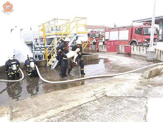 金湖消防分隊近日結合台灣中油金馬行銷中心辦理「擴大規模聯合防救災演練」,並藉由此次演練來展現與驗收平日消防人員救災團隊默契,加強各項災害應變能力。 此次參與演練人員計有中油公司經理陳清郎、組長楊國強及所屬員工等8人;金湖消防分隊由科長陳叄奇率領金湖消防分隊及金沙消防分隊同仁等17人,義消則由二大一中副中隊長李建新協助參與。計出動水箱車、水庫車、化學車、救護車等各式救災車輛加入演練,同時驗收車組作戰的佈署方式,以達成協調一致的消防作戰方式。 演練模擬料羅外海100海浬發生8級海底地震,造成金馬行銷中心D301(K-01、K-02儲油槽旁)儲油槽幫浦出口螺絲鬆脫漏油,並因摩擦產生靜電起火燃燒,現場輸油員巡邏發現,先以20磅滅火器執行初期滅火失敗,現場火勢及濃煙並有擴大及延燒之虞;此時,中油經理陳清郎見狀立即啟動緊急應變機制,指揮其自有消防車先做初期火勢控制,並啟動該區內2座無人砲塔射水以防護其他油槽,以免受到火勢波及,並通報相關單位請求消防車及救護車支援搶救。由於油槽火災具有危險性大、不易控制、延燒快速等特性,故於消防部署時,除依據「MSDS」物質安全資料表特性採取滅火措施外,油類火災應以蛋白質泡沫溶液射水進行遮斷覆蓋來控制。 金湖消防分隊接到勤指中心指令後,由科長陳叄奇率人員出勤,抵達現場後,於該場所適當地點設立火場前進指揮站及傷病患暫時收容中心並啟動火場安全管理機制,指揮官先環顧週遭環境及燃燒狀況,並聽取場區人員提供之災情資訊後,立即將演練人員集結作任務分配。 金湖51化學車以泡沫系統噴射輕水泡沫溶液攻擊起火點;金湖11水箱車佈署2水線延伸至儲油槽幫浦出口螺絲鬆脫漏油起火處所進行儲油槽管線關閉、止漏及實施受傷病患人命救助,並佔取廠區消防栓水源中繼供水給予金湖51車,提供搶救所需消防水源;金湖91車於現場成立救護站及指揮站後,車輛人員支援各式車輛裝備器材搶救工作,傷病患救出時,由91車協助將傷者送醫;金沙51化學車佈署泡沫水線至起火處正面,協助滅火搶救工作;金沙61水庫車停放於金沙51車後方,佔取廠區消防水源中繼供水給予金沙51車,人員於側面架設操作移動式砲塔,進行灑水降溫防護工作。 此次演練結束後,台灣中油金馬行銷中心陳經理特進行專題簡報,使消防人員能充分瞭解廠區救災及救護車輛行進動線、車輛部署、水源中繼部署位置、相關防救災設施設備等,確保災害發生時能迅速整合相關消防戰力,執行消防戰術下達及傷病患拯救,減少災害損失。 金湖消防分隊表示,為落實平時對轄內列管場所之熟悉度,整合個人訓練成果、瞭解轄區重要場所特性、強化消防人員執行緊急應變措施之能力暨整合各單位人力、裝備、器材,以提昇大隊聯合救災之任務分配及戰力統合,以利火警狀況發生時,能迅速即時到達現場,展開人命搜救及部署搶救之效能,以保護民眾生命財產安全,熟練救災技能,提高防火警覺,期能減少災害發生,並將災害降至最低。 金湖消防分隊強調,「推動經濟舵手在中油,奠定公安唯我消防人」,訓練是為利於同仁因應瞬息萬變的災害現場,經由此次結合中油金馬行銷中心辦理擴大規模防救災搶救演練,除了熟悉該廠區相關搶救動線暨軟硬體應用之相關安全注意事項,並結合廠區進行聯合組合訓練,未來將賡續執行各項災害防救訓練,相信在大家的一起努力之下,一定能夠給予民眾最好的生活空間,並肩負起維護地區民眾生命財產安全之重責。