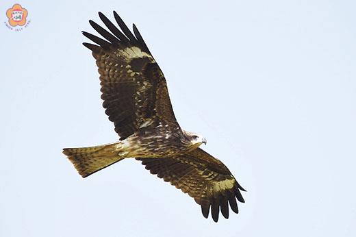 董森堡/圖文 身為食物鏈最頂端,所有的鷲鷹科猛禽都列名農委會保育類動物,金門地區冬季就常出現許多不同種類的隼、鴞、鷹等氣勢非凡的猛禽,這些猛禽多以老鼠或是小鳥為食,有平衡生態、抑制鼠害的重要功能,常出現在空曠地帶的黑鳶(如圖)常乘著上升氣流飛翔,用銳利眼光巡視週邊環境的獵物,一派動人的羽毛與寬闊翼展,展現出猛禽動人的特有魅力。