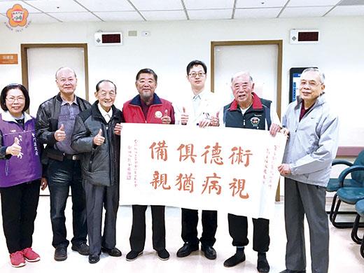 圖文/陳冠霖 金門縣愛心團隊、紅十字會、愛心基金會創始人許金龍、名譽會長蔡清龍、名譽董事長吳炯煒、董事林聯登、董事薛永培等人,以感恩之心在金門醫院慶祝71週年之際,致贈書法墨寶「視病猶親、廣施博愛」一幅給金門醫院。 同時對剛榮獲優良醫師的泌尿科主任醫師翁文慶,感謝其醫術精湛、視病如親的服務精神,致贈「厚德仁心」、「愛心仁術、妙手回春」、「術德俱備、視病猶親」共3幅提字,以表衷心感寫與感恩。 同時感謝金門縣政府對金門醫院的照顧,欣喜金門醫院各式設備逐步到位,減少後送之舟車勞頓,期盼金門縣政府再加把勁研議獎勵,落實「病人不動、醫生動」醫療在地化之最高精神,是金門鄉親之福。