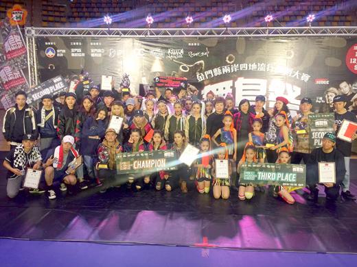 金門縣兩岸四地流行舞蹈大賽「舞島祭」昨於金湖體育場登場,在經過一下午的比拚後,由freedom拿下團體組冠軍,至於個人battle賽事則由Benson奪魁。 由金門縣政府指導、金門縣舞蹈協會主辦、縣立體育場與的TWKAA台灣動態藝術協會協辦的兩岸四地流行舞蹈大賽「舞島祭」,昨日下午假金湖體育館盛大登場,來自各地的舞蹈選手們在館場內展現精彩舞藝,以動人舞姿與優美的肢體動作贏得現場觀眾的熱烈掌聲,到場參與的選手們期望透過舞藝交流,提昇地區的舞蹈水準及運動風氣。 這項比賽是在昨天下午一時許,於金湖體育館正式展開,來自兩岸四地舞蹈選手齊聚一堂,而縣議會副議長謝東龍、縣議員唐麗輝、教育處處長李文良與金門舞蹈協會理事長林明麗也出席與會,為選手們加油打氣。副議長謝東龍也期許選手們在舞蹈比賽中盡情表現,以最拿手的舞技為自己爭取最佳成績。 此次賽事中,主辦單位為豐富賽程內容,還在賽事中穿插了ance Showcase Contest團體排舞賽與個人battle 賽,舞者們上台帶來的精湛演出,讓現場觀眾們看得目不轉睛、掌聲不斷。在經過一個下午的熱烈比拚後,團體組冠軍由freedom獲得、亞軍freezkill、季軍TCMM,另外三組優勝為Triangle、Under Urban、MiniKo。至於個人battle賽部份,冠軍為Benson、亞軍紀璿。其中Dance Showcase Contest團體排舞賽頒發獎金八萬元、亞軍六萬元、季軍四萬元,至於個人Battle賽冠軍頒發獎金一萬元,亞軍八千元。
