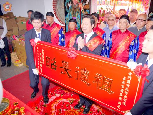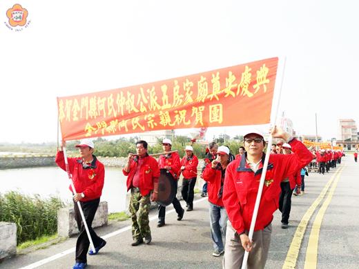 金門縣何氏五房仲叔公派家廟舉行奠安大典,縣長陳福海率一級主管與會,並進行獻匾等儀式,率領縣府主管前往上香致意、敬獻爐敬金,共同焚香祝禱祈求國泰民安、風調雨順。 陳福海是在九日早上八時三十分許,率領民政處長陳世保、教育處副處長陳金文等縣府一級主管,前往金沙鎮的何氏五房仲叔公派家廟參加奠安大典,並主持點主、獻匾等儀式,一行人受到何氏宗親的熱情歡迎,眾人並在鼓吹、宗親長老的帶領下,浩浩蕩蕩由村外迎匾進行何宗家廟。 陳福海依古禮在何氏家廟內依序完成焚香、晉爵、晉牲儀、獻金帛等儀式,他並與現場的何氏宗親話家常,也期許奠安活動順利圓滿,吸引更多何氏宗親返金感念先人恩澤,發揮金門慎終追遠的精神。 據金門縣何氏五房仲叔公派家廟奠安委員會表示,該會在二天的奠安活動中陸續完成進鬧壇、掀樑、追龍迎接外家姻親慶賀團等行程,並舉辦閩戲公演,吸引許多鄉親熱情參與。十日的奠安儀式則有鎮磚符、敬后土、化六宿、獻五穀、淨油、插柳、埋磚契等活動,晚上十一時關閉家廟大門,十二日將再辦理啟扉典禮,歡迎喜好閩南文化活動的朋友們前往逗熱鬧。 金門縣何氏五房仲叔公派家廟奠安委員會指出,該宗的安撫公是在唐代入閩後,由十五世祖遷居金門陳坑的「羊角穴」居住,並娶戴氏為室,自此開枝散葉、子孫綿延,五房家廟原於浦邊蓮花宮後方,因戰亂年久失修,宗親為了追懷祖德重建家廟,希望藉此凝聚何氏宗親的向心力,感念先人的遺風。