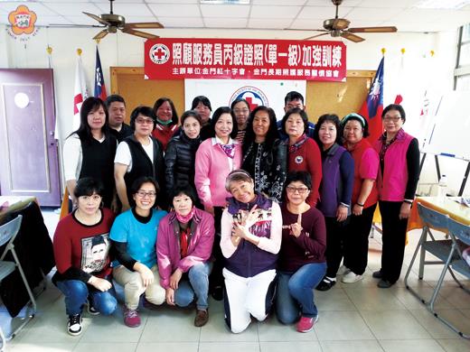 金門縣紅十字會與金門縣長期照護服務關懷協會辦理「照顧服務員丙級(單一級)技術士檢定訓練班」在莒光山莊紅十字會會議室舉行,由金門縣長期照護服務關懷協會蔡玲敏理事長與中華民國紅十字會教練許乃泮傳授教導,以充實參與學員學科暨術科檢定範圍之相關知識技能。 這項丙級技術士檢定訓練班於日前在金城鎮莒光山莊紅十字會會議室展開,一連三天的培訓課程共計22小時(每天上午8時30分至下午5時),希望透過的紮實訓練,建立照顧服務員具備照顧服務所需「知識」、「技能」、「情意」的基本標準,強化照顧服務專業能力,不但可強化就業競爭力,更以提升照顧服務品質為主要目的,以保障案主之福祉。 金門縣紅十字會總幹事陳忠飛指出,此次訓練包括學科暨術科檢定範圍之相關知識技能,協助其順利考取丙級證照,明年度衛生福利部即將推出長期照護2.0,對於照顧服務人力之需求是可預見的,目前長期照顧大環境最欠缺需求者即是照顧服務者,課程內容為秉持職業倫理,運用照顧相關知識、技能與情意,提供案主在日常生活中所需之協助與支持,所以藉此訓練課程希望能培育更多投入夥伴,更增加其就業機會。 課程特別邀請金門縣長期照護服務關懷協會蔡玲敏理事長授課,她曾多次受邀講課,兼具長期照護專業領域服務近20年,有多數學員接受其輔導而考取證照。 而此次急救訓練課程是邀請中華民國紅十字會許乃泮教練傳授教導成人異物哽塞急救法;成人心肺復甦術(CPR)等。 金門紅十字會指出,本職類檢定之知能包括「身體照顧」、「生活照顧」、「家務處理」、「緊急及意外事件處理」、「家庭支持」、「職業倫理」等六項。 照顧服務員丙級檢定考試為學科筆試通過後進行術科考試,術科考試分成7大項,分別是1.備餐、餵食及協助用藥;2.洗頭、衣物更換;3.會陰沖洗及尿管清潔;4.生命徵象測量;5.協助下床及坐輪椅;6.成人異物哽塞急救法;7.成人心肺復甦術(CPR)。